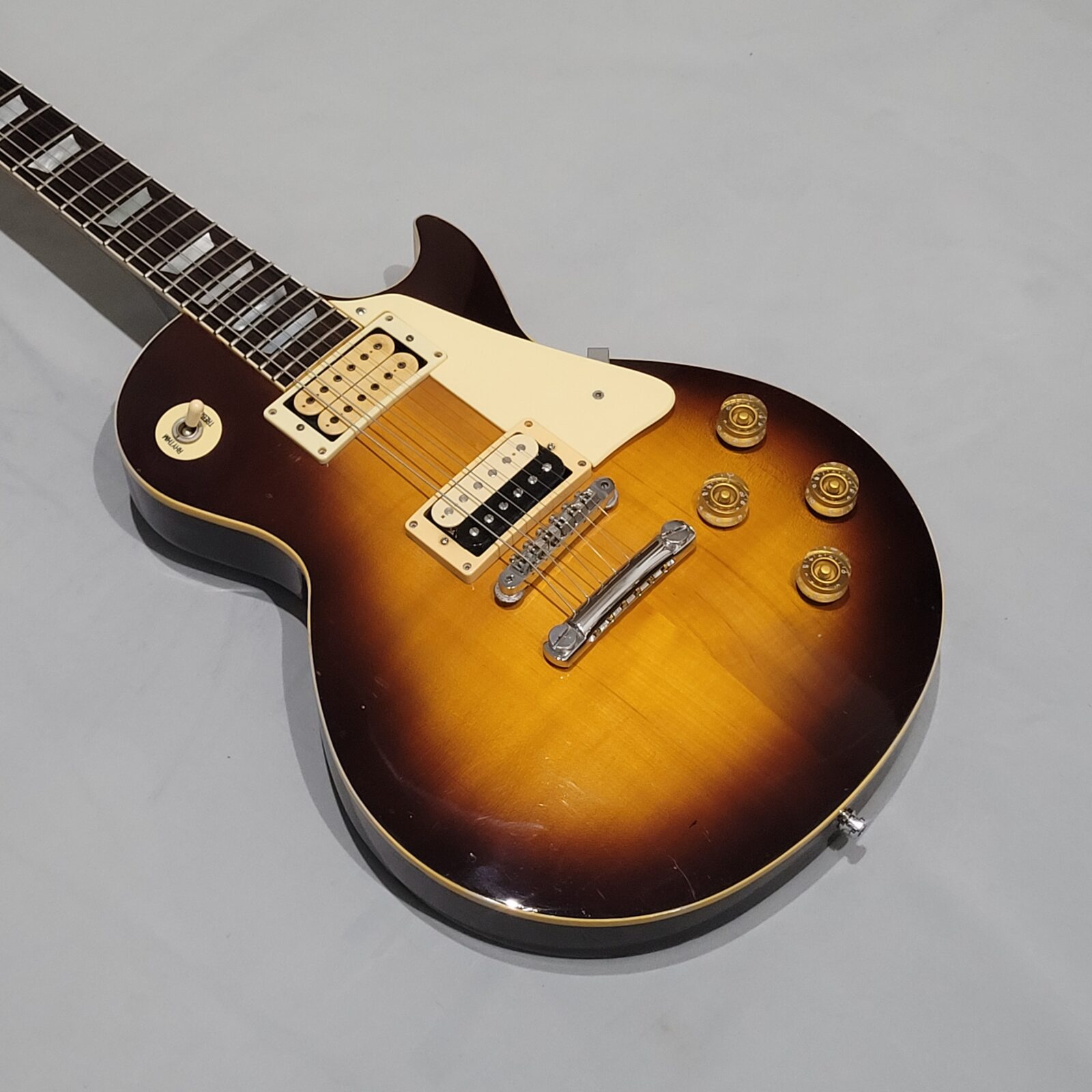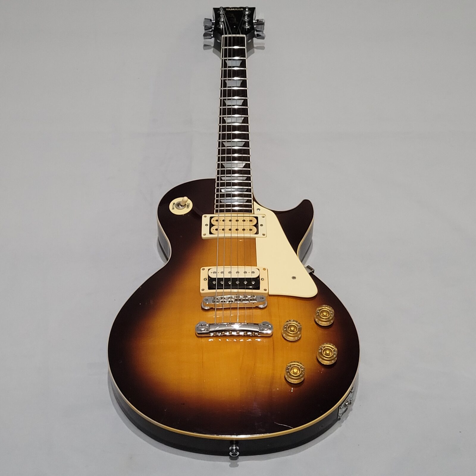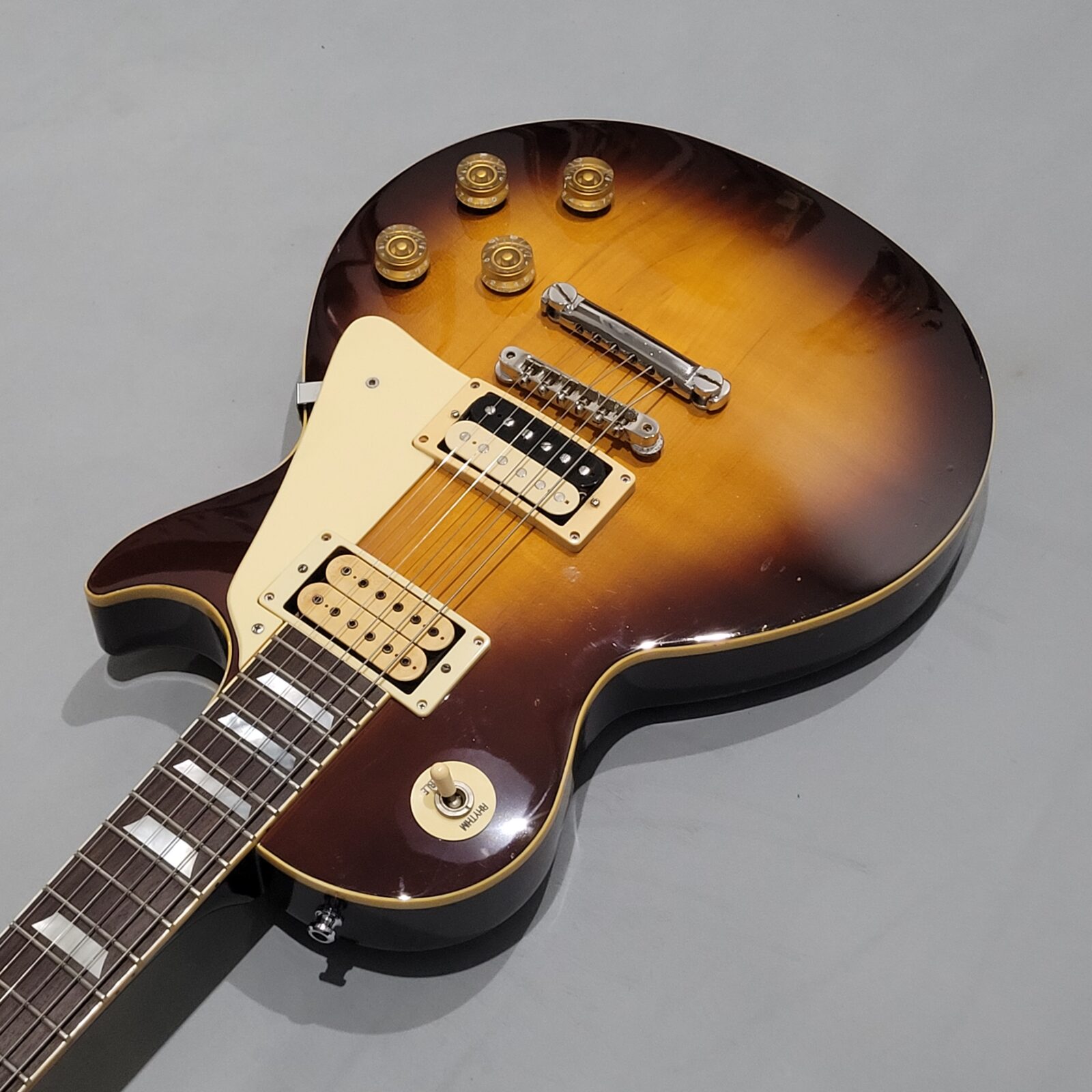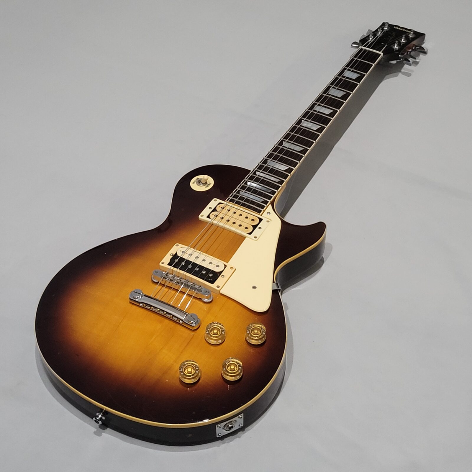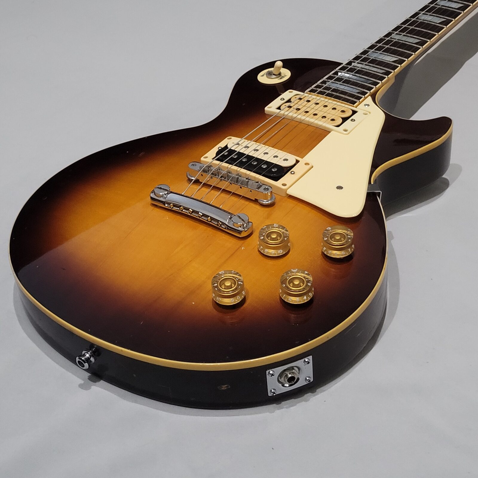 Yamaha SL800 Studio Lord, czyli model ze wysokiej półki jeśli chodzi o les paule wytwarzane przez Yamahę w latach 80 w Japonii, często określany jako „high end” Yamahy w temacie LP. Korpus wykończony w ładnej przypalance, pickup pod gryfem wygląda na oryginalny, natomiast pod mostem siedzi seymour duncan ‘59, który brzmi raczej „wintydż” – jak ktoś lubi brzmienie Mike’a Nessa z Social Distortion to będzie w domu. Wiosło po pełnym serwisie, obejmującym m.in. wstawienie nowych progów i siodełka.