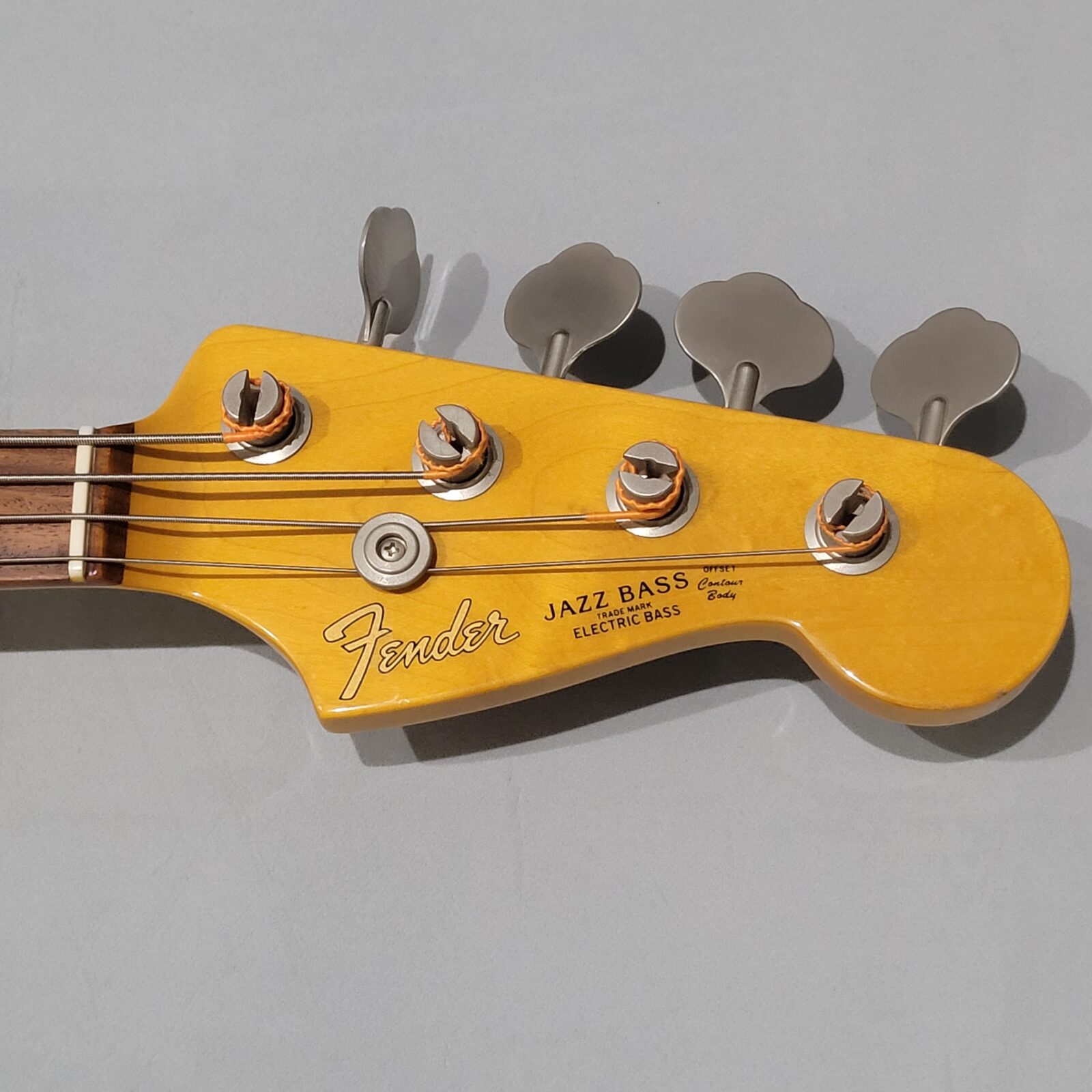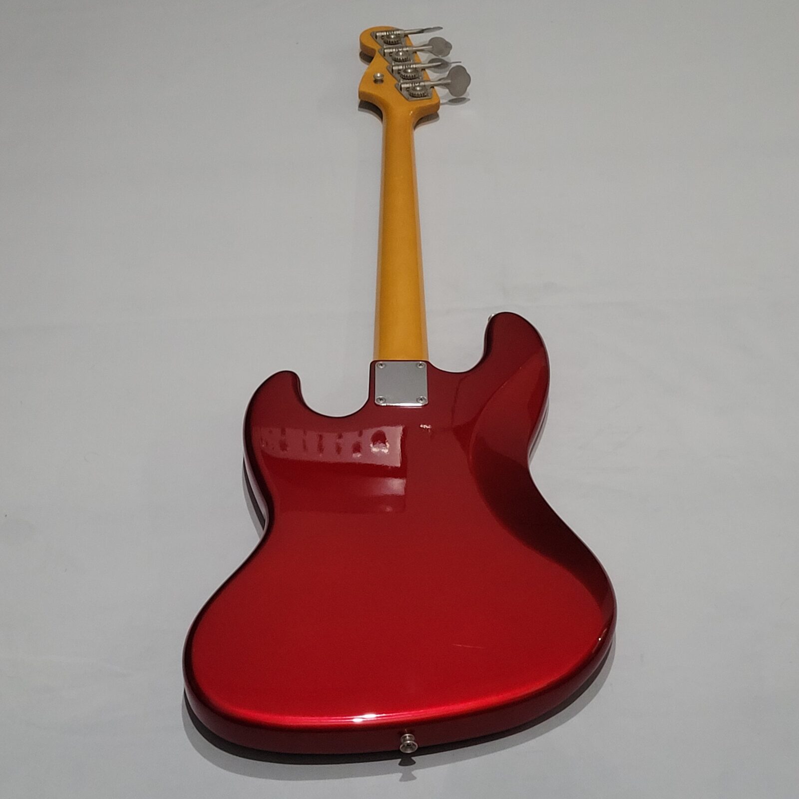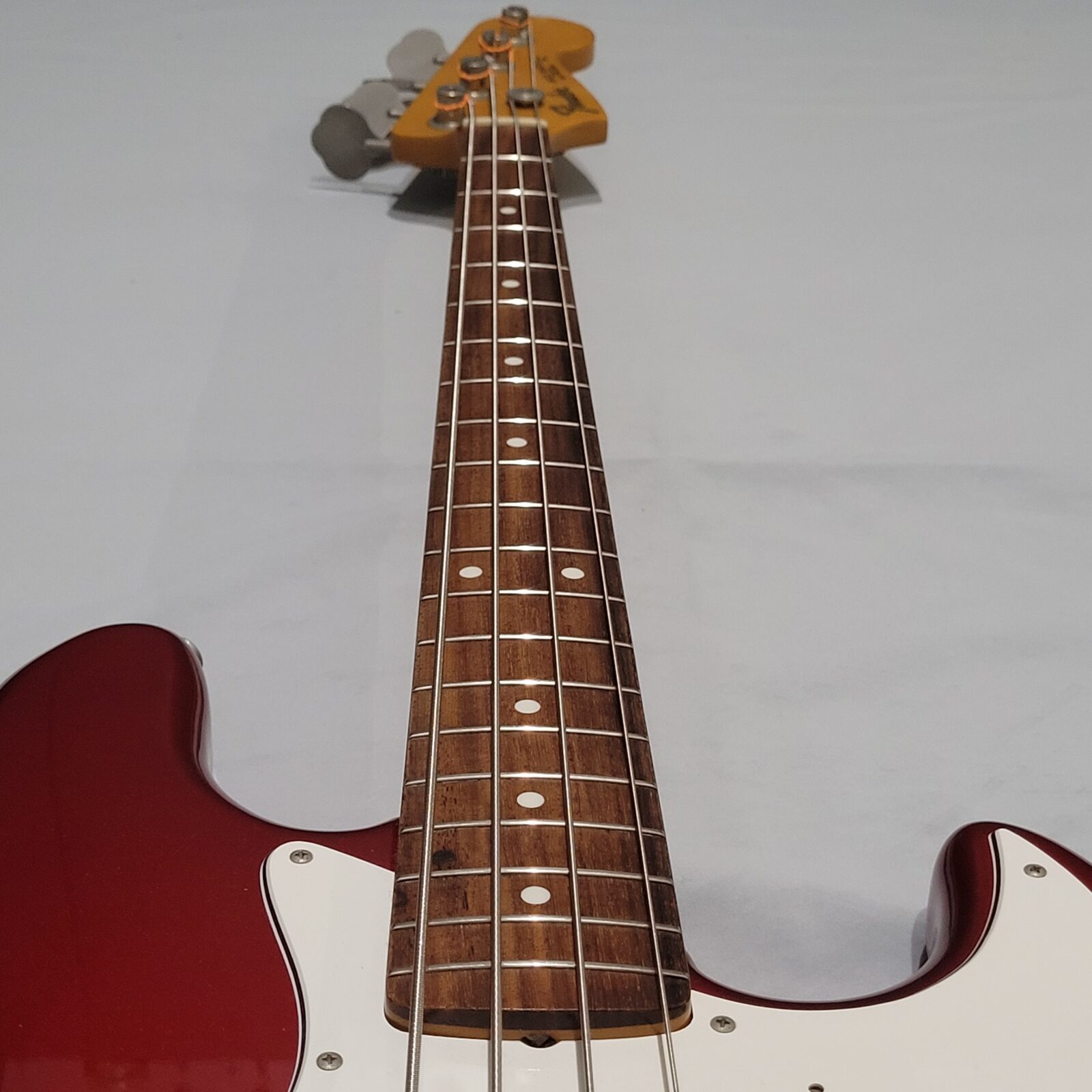 W latach 60 w Stanach, wchodziłeś do salonu Chevroleta, brałeś Camaro w kolorze Candy Apple Red i jak dobrze zagadałeś to diler w bagażniku oprócz strzelby Mossberga z zapasem amunicji, dorzucił jeszcze Jazz Bassa pod kolor fury. U mnie nie ma ani Camaro, ani strzelby Mossberga z amunicją, ale za to jest ten piękny jazzik ‘62 Reissue w kolorze Candy Apple Red. Bas nie byle jaki, bo z wyższej serii, od bazowego ‘62 Reissue odróżna go: olchowy korpus, duże klucze, pickupy made in USA oraz spiralne siodełka na mostku. Akcja strun ustawiona na uczciwe 2,25mm dla E/2,00mm dla G. Ciemniejsza kropka na podstrunnicy w okolicach 18 progu – musiał być tam jakiś drobny ubytek i jest to ślad po naprawie, na grywalność w żaden sposób to nie wpływa. Basen na elektronikę wyekranowany miedzią, jazz miał zrobiony kompletny manicure i pedicure. Takie SPA tylko w Gitarach Orientu!