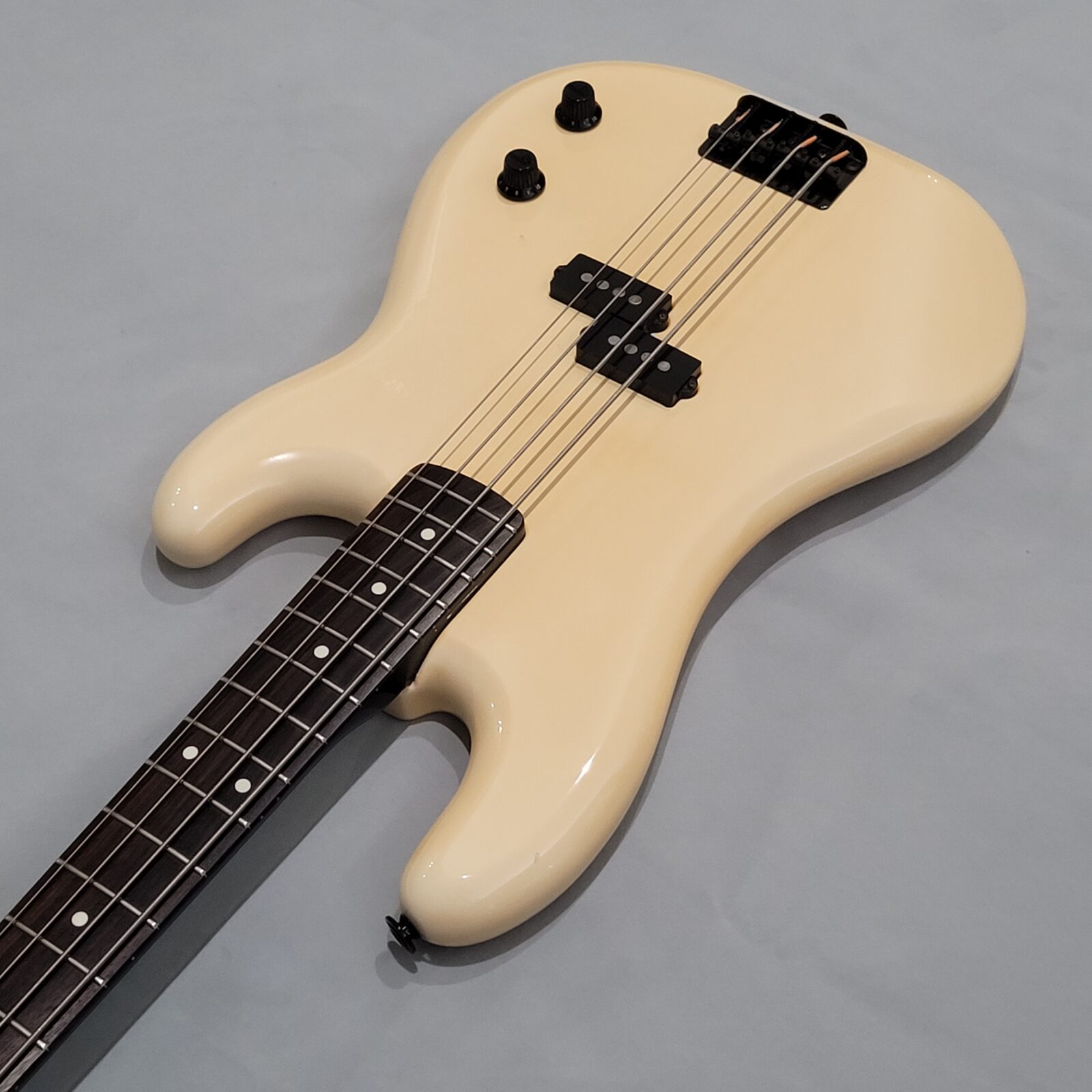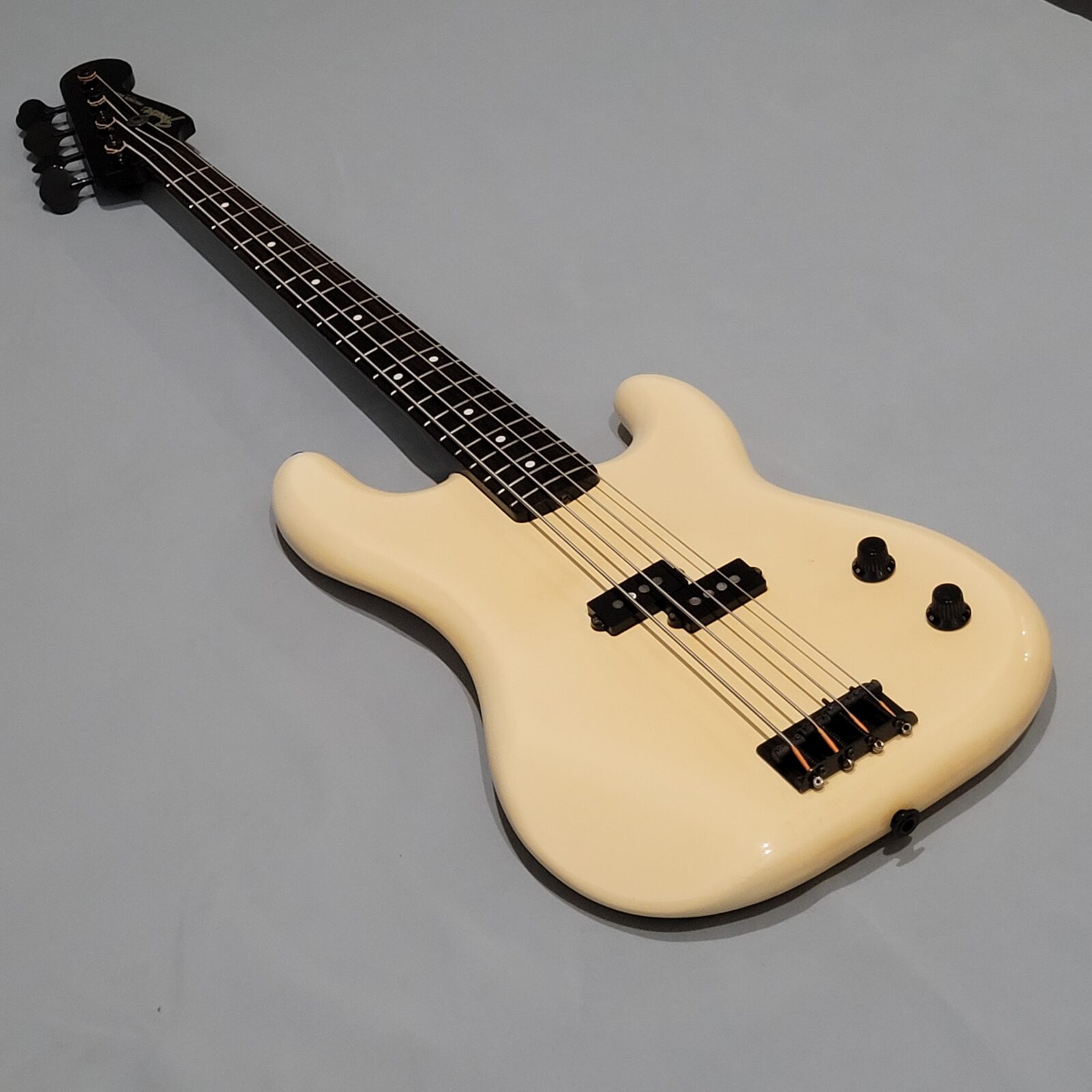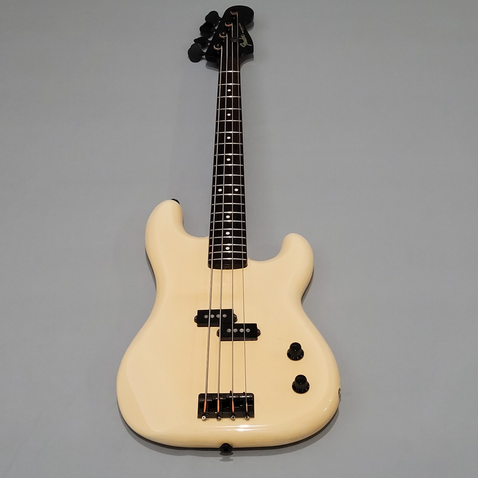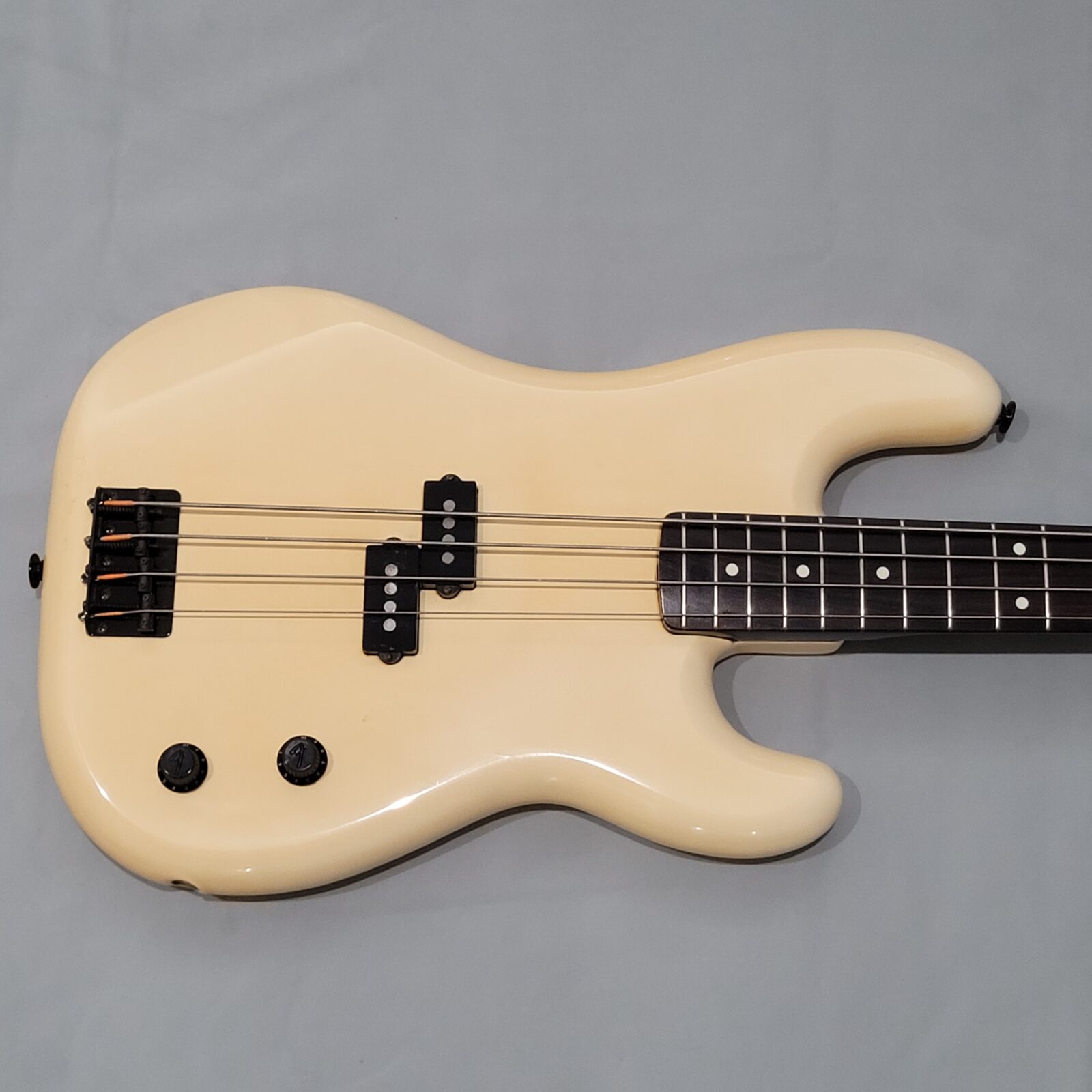 Fender Boxer Precision Bass Made in Japan, A serial więc rok produkcji pomiędzy 1983-1987. Bardzo rzadki model precla PB-551, pięknie zwintydżowany kolor olympic white. Boxer jak to boxer, podpinasz do ampega, bierzesz kostkę i zasuwasz. Nic więcej nie trzeba. Do gitary dorzucam hard case z epoki. Sama gitara technicznie bez zarzutu, progi mają sporo życia, wiosło po setupie.
