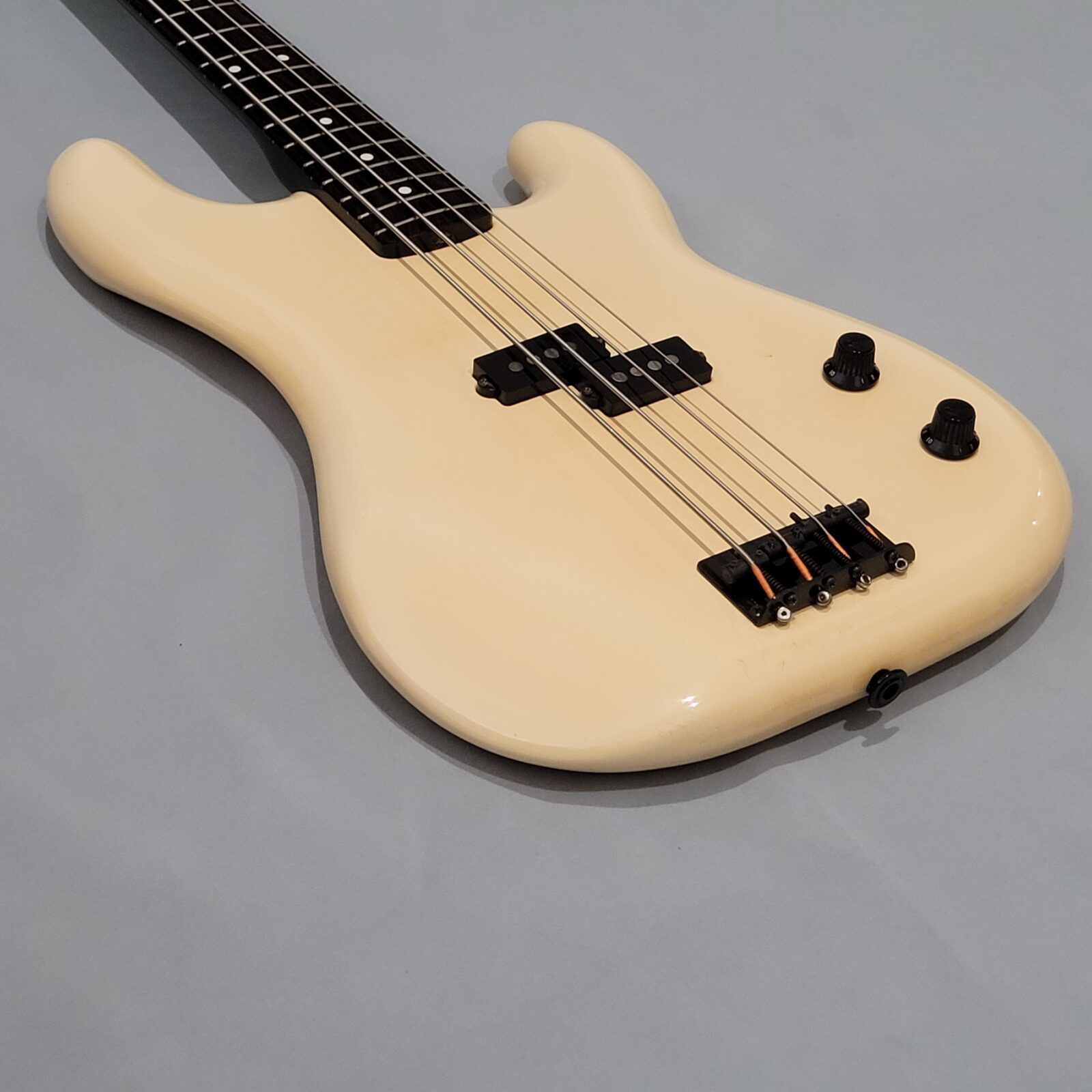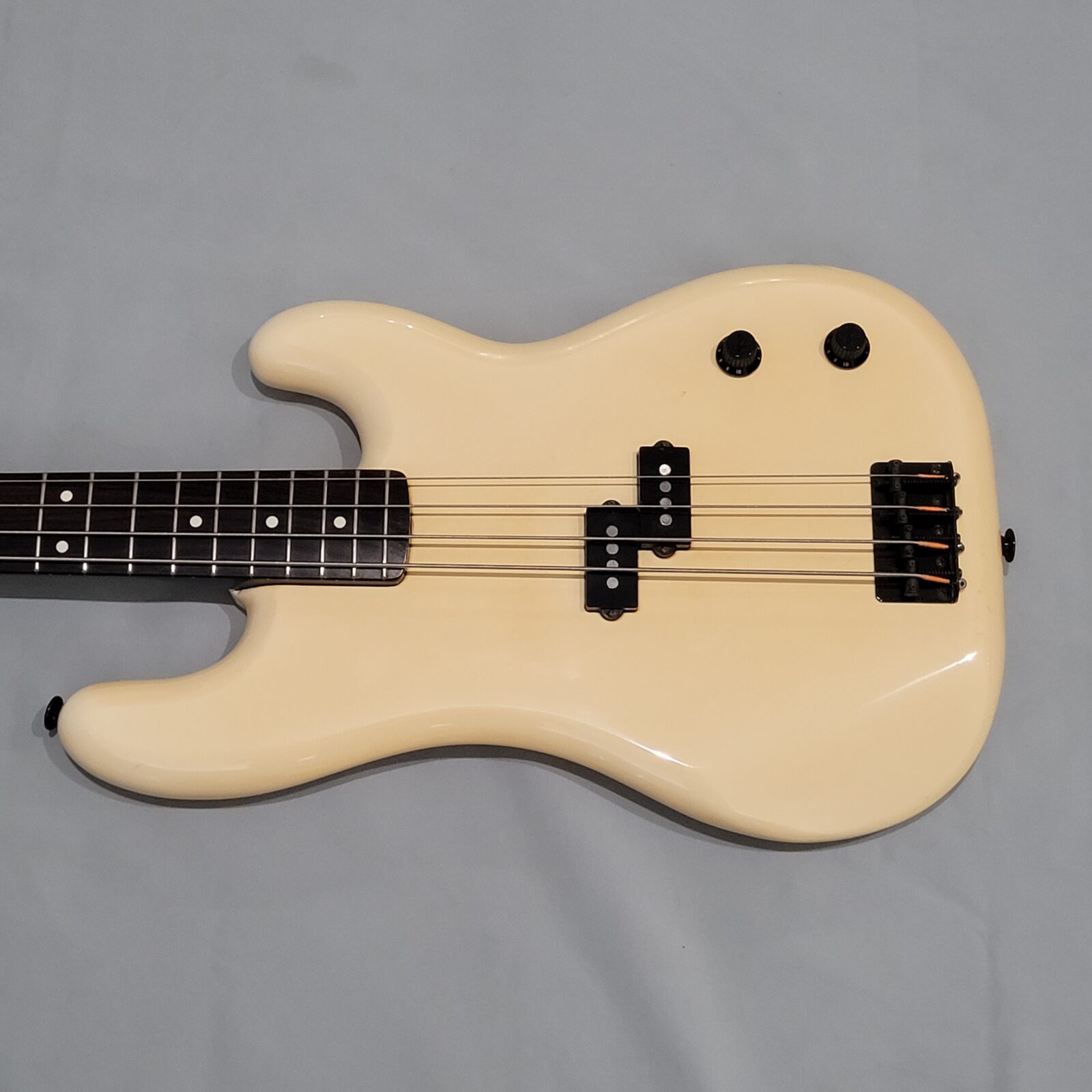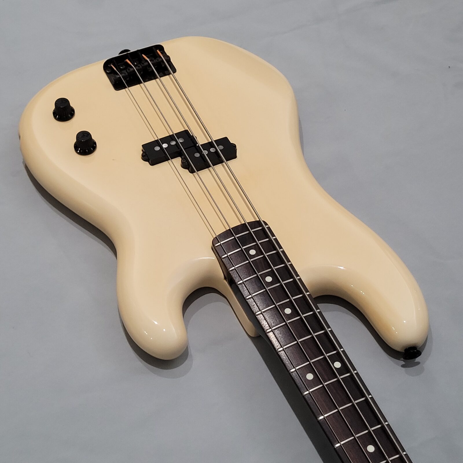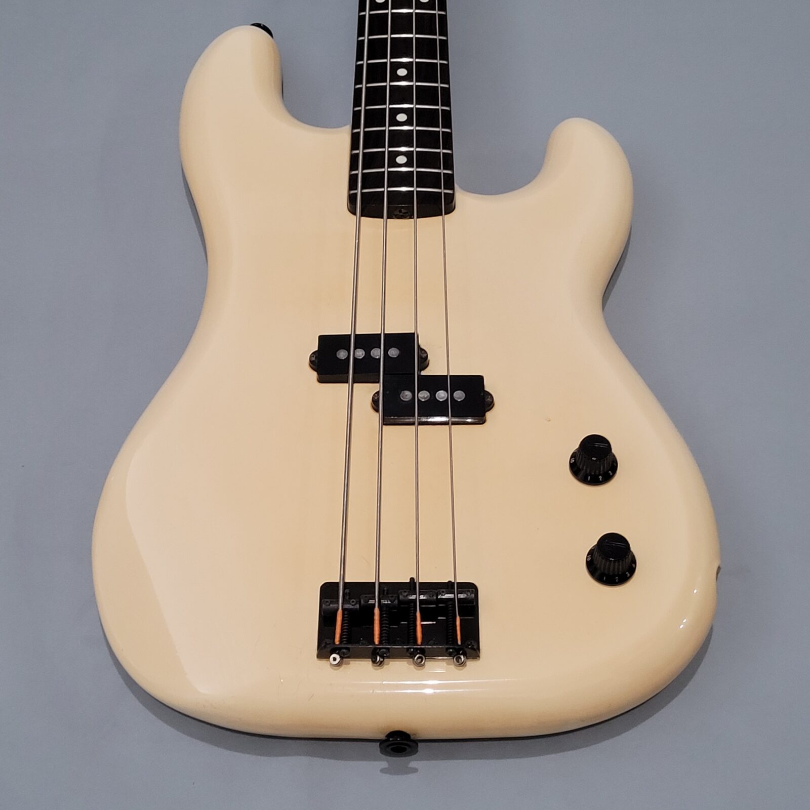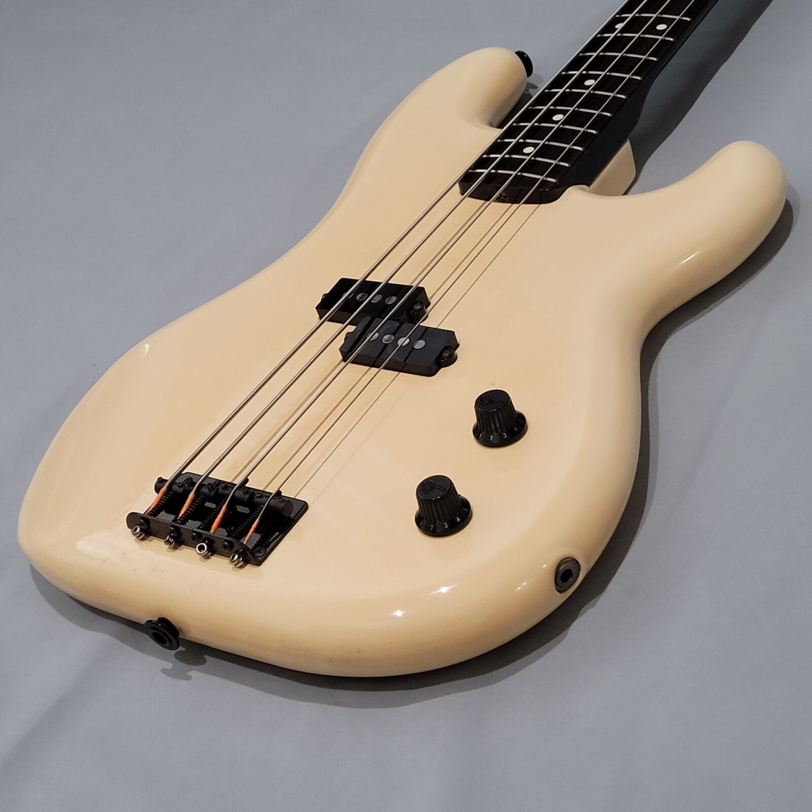 Fender Boxer Precision Bass Made in Japan, A serial więc rok produkcji pomiędzy 1983-1987. Bardzo rzadki model precla PB-551, pięknie zwintydżowany kolor olympic white. Boxer jak to boxer, podpinasz do ampega, bierzesz kostkę i zasuwasz. Nic więcej nie trzeba. Do gitary dorzucam hard case z epoki. Sama gitara technicznie bez zarzutu, progi mają sporo życia, wiosło po setupie.