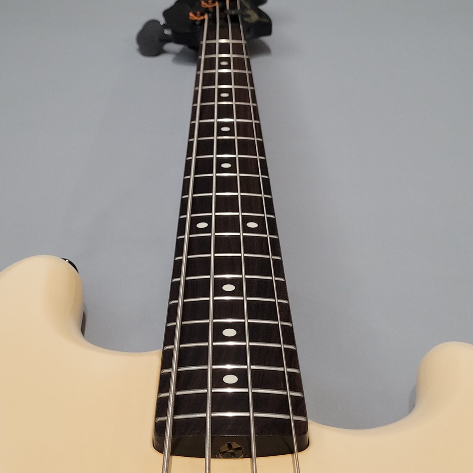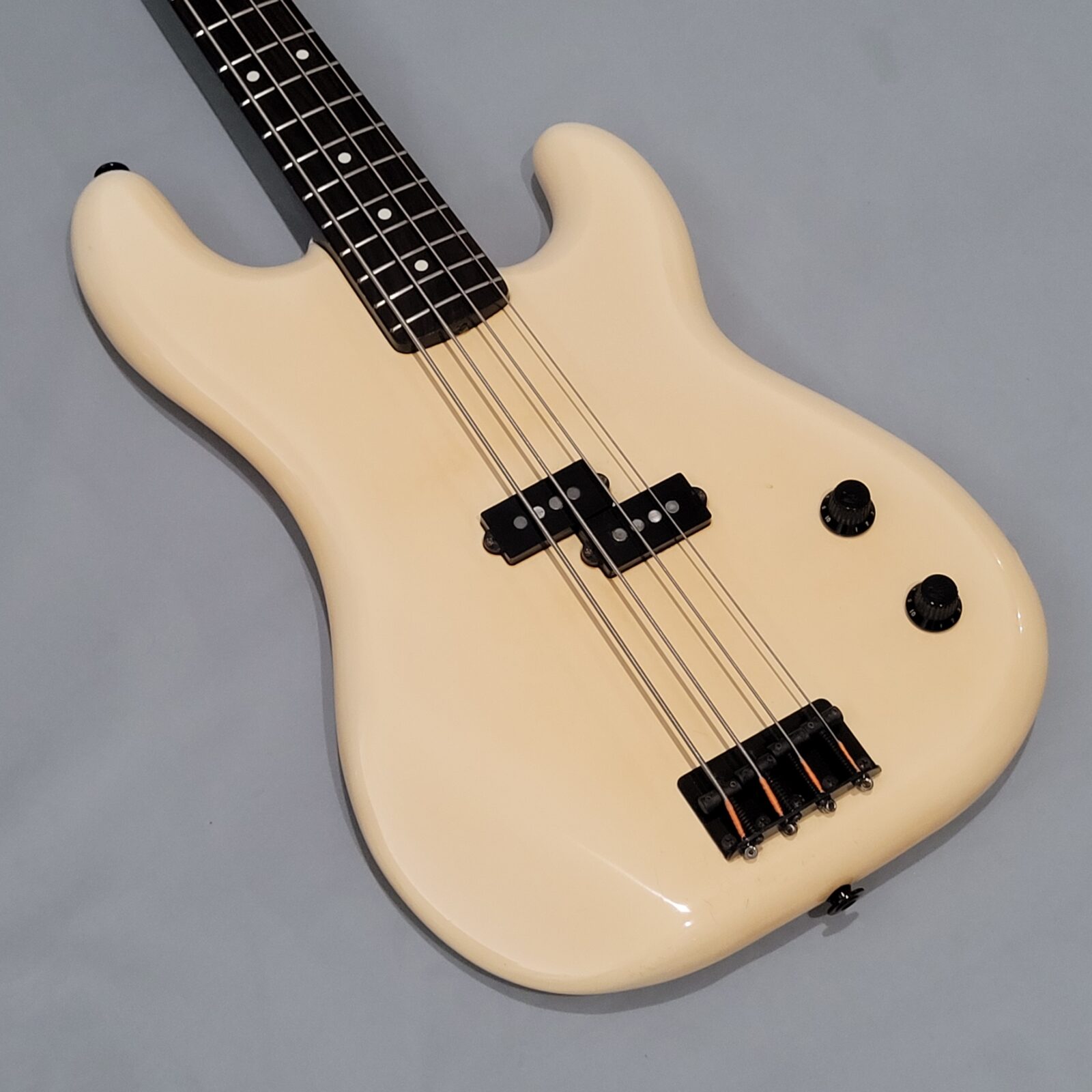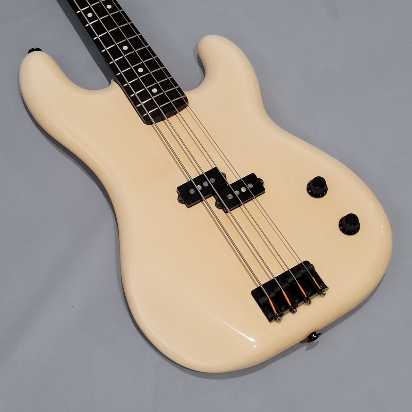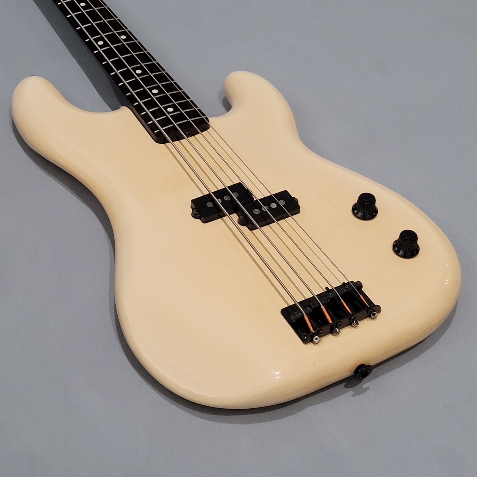 Fender Boxer Precision Bass Made in Japan, A serial więc rok produkcji pomiędzy 1983-1987. Bardzo rzadki model precla PB-551, pięknie zwintydżowany kolor olympic white. Boxer jak to boxer, podpinasz do ampega, bierzesz kostkę i zasuwasz. Nic więcej nie trzeba. Do gitary dorzucam hard case z epoki. Sama gitara technicznie bez zarzutu, progi mają sporo życia, wiosło po setupie.