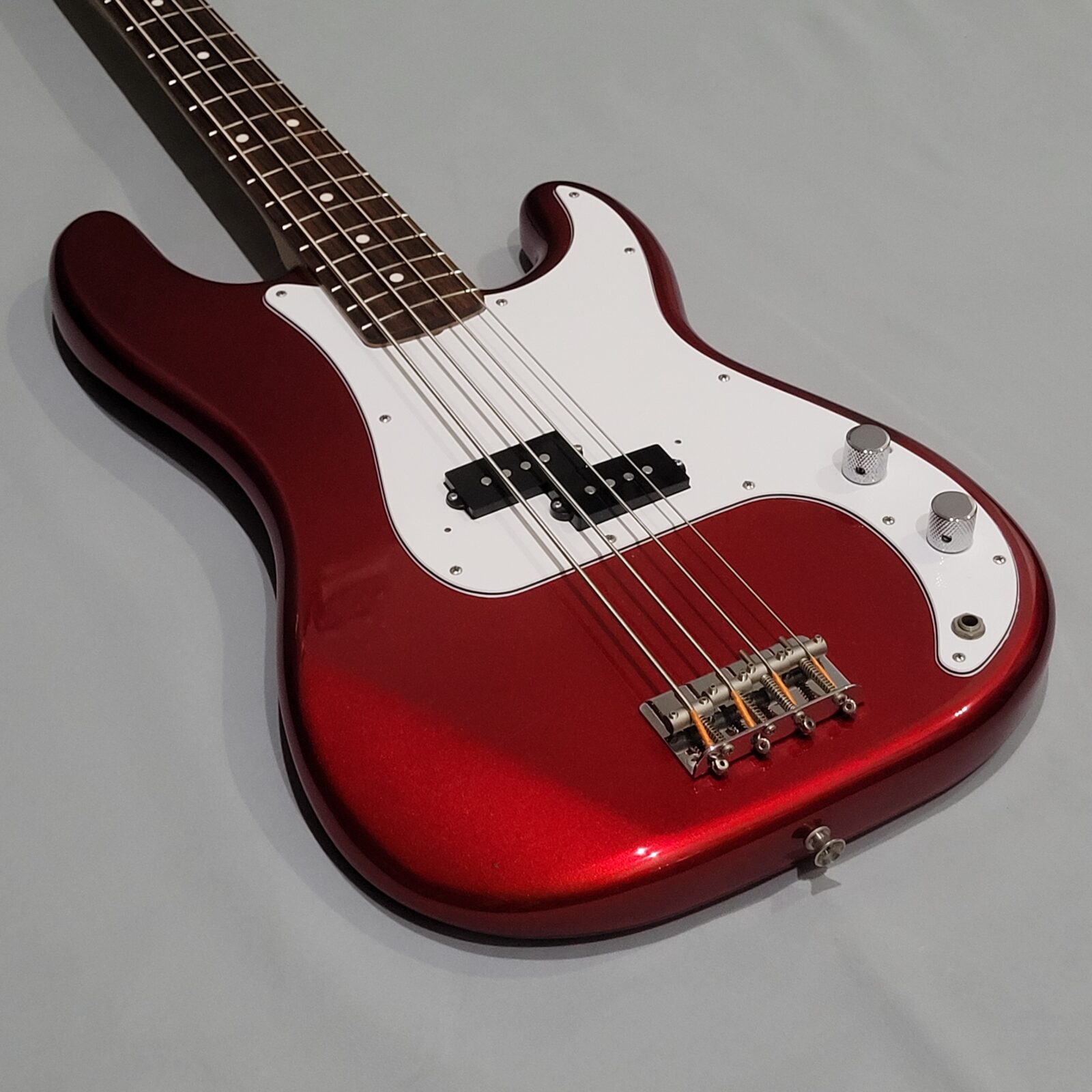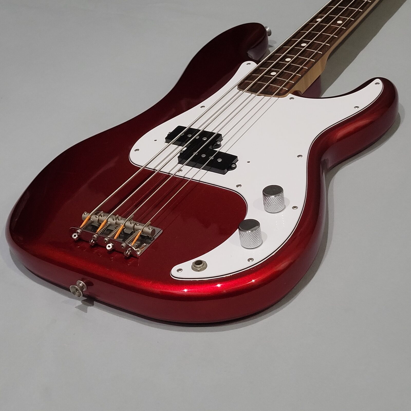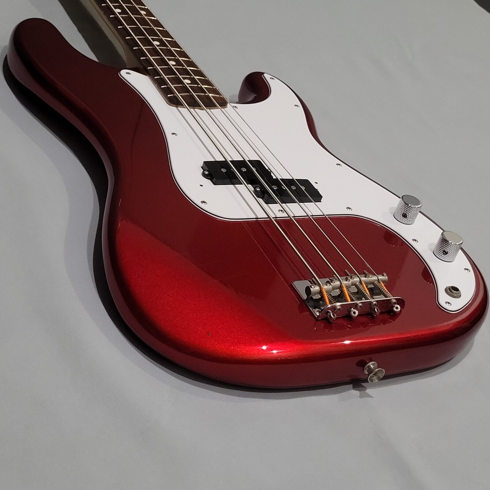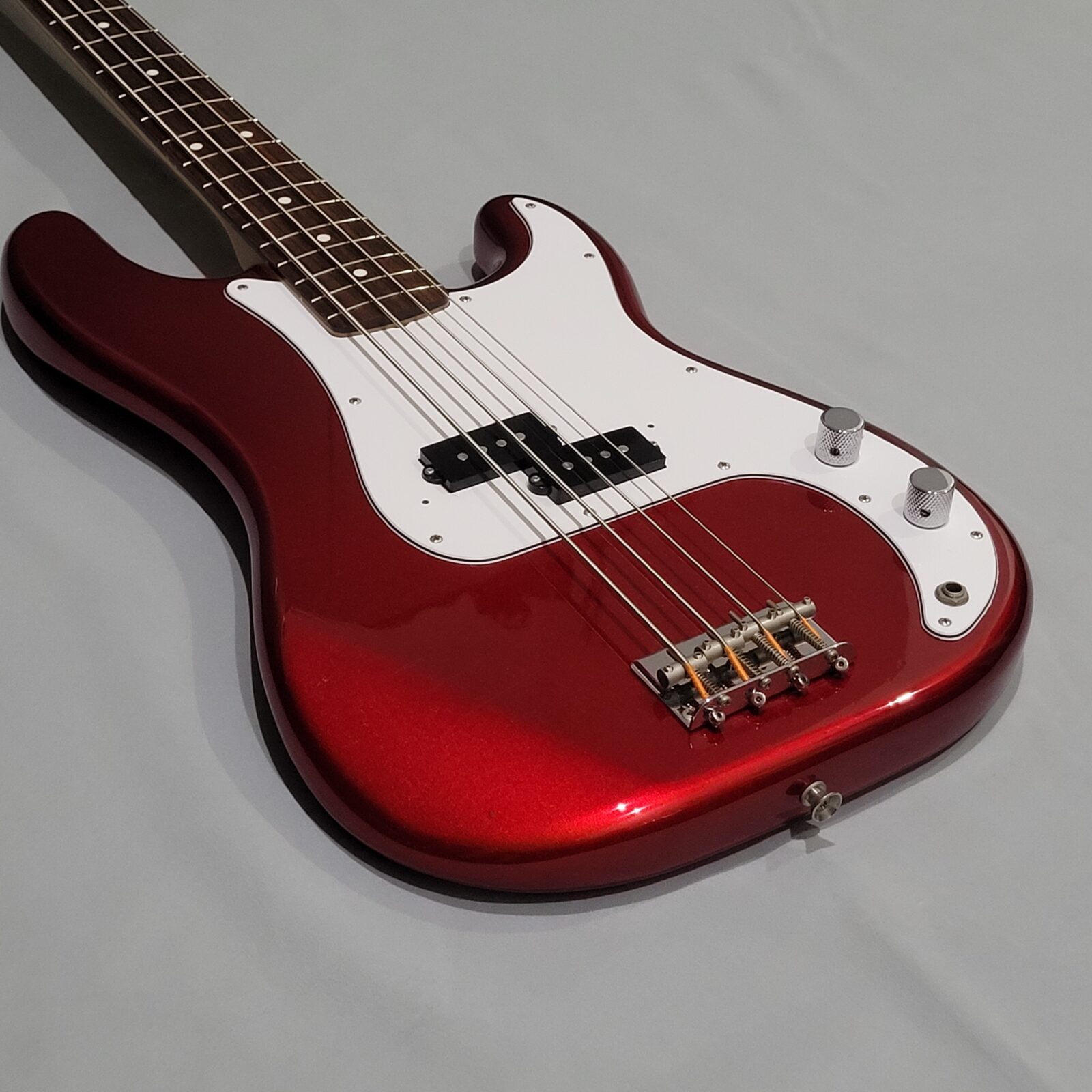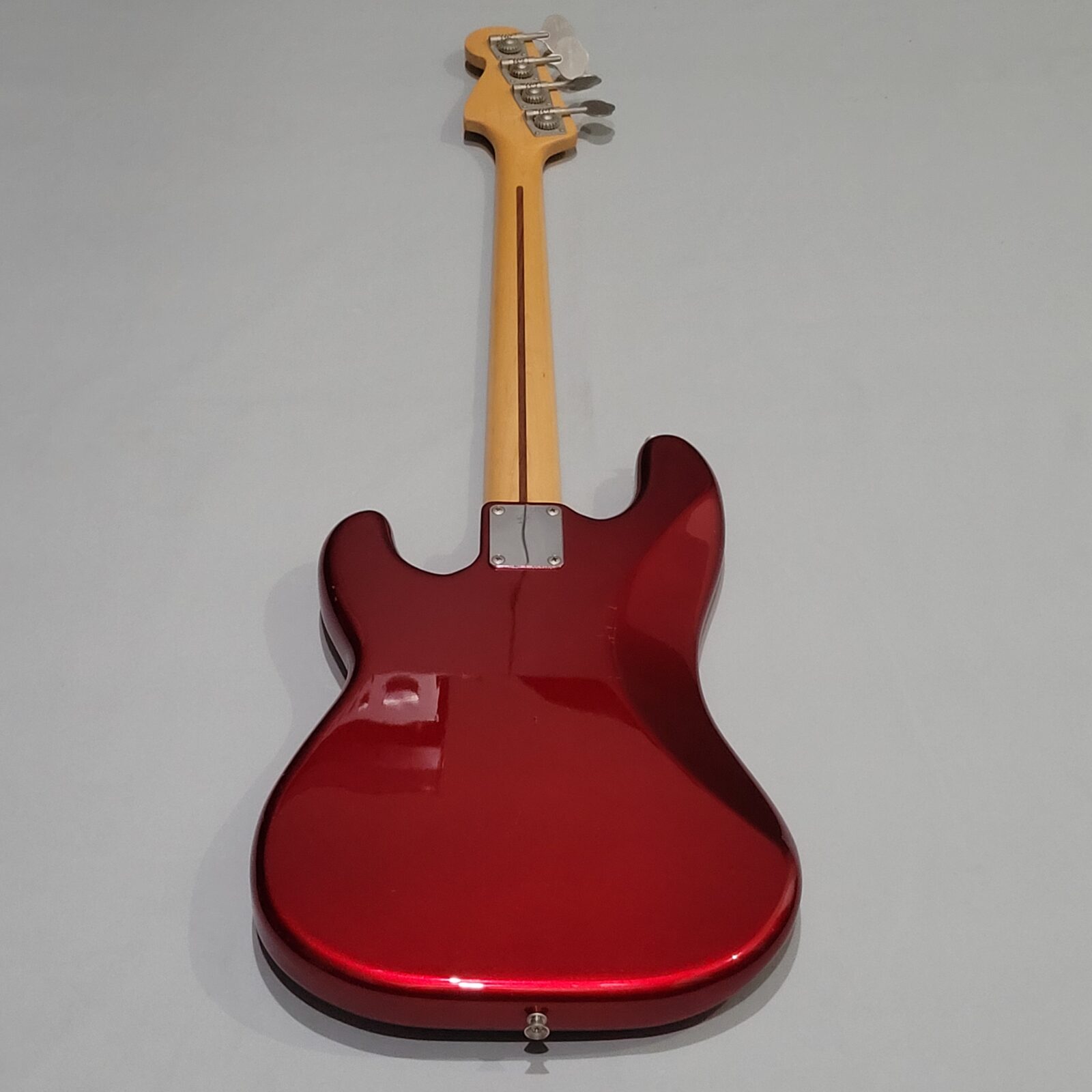 Klasyka w pięknym wydaniu – Candy Apple Red w metaliku robi robotę w tym precision bassie! Ja osobiście bym jeszcze mu wrzucił płytkę tortoise shell i byłby wtedy kompletny ogień. Specyfikacja powyżej, więc nie będę powtarzał, w basie wszystko gra, jest ustawiony, a progi są w zasadzie nowe, bo cieniutkie progi vintage style zazwyczaj mają fabrycznie wysokość 0.9-1mm, korony igła! Akcja strun ustawiona na uczciwe 2mm dla E/1,75mm dla G. Basen na elektronikę wyekranowany miedzią, P-Bass miał zrobiony kompletny manicure i pedicure. Takie SPA tylko w Gitarach Orientu!