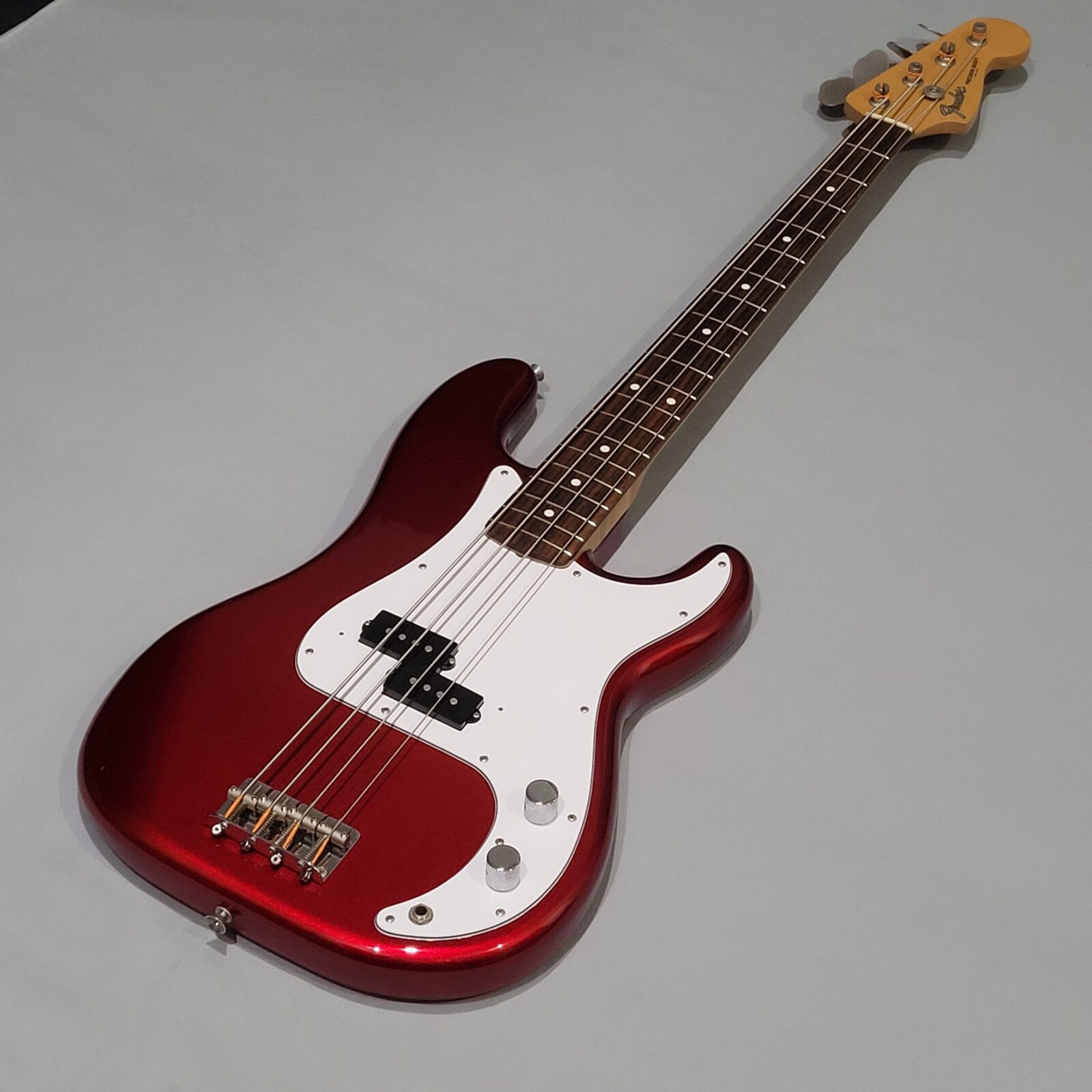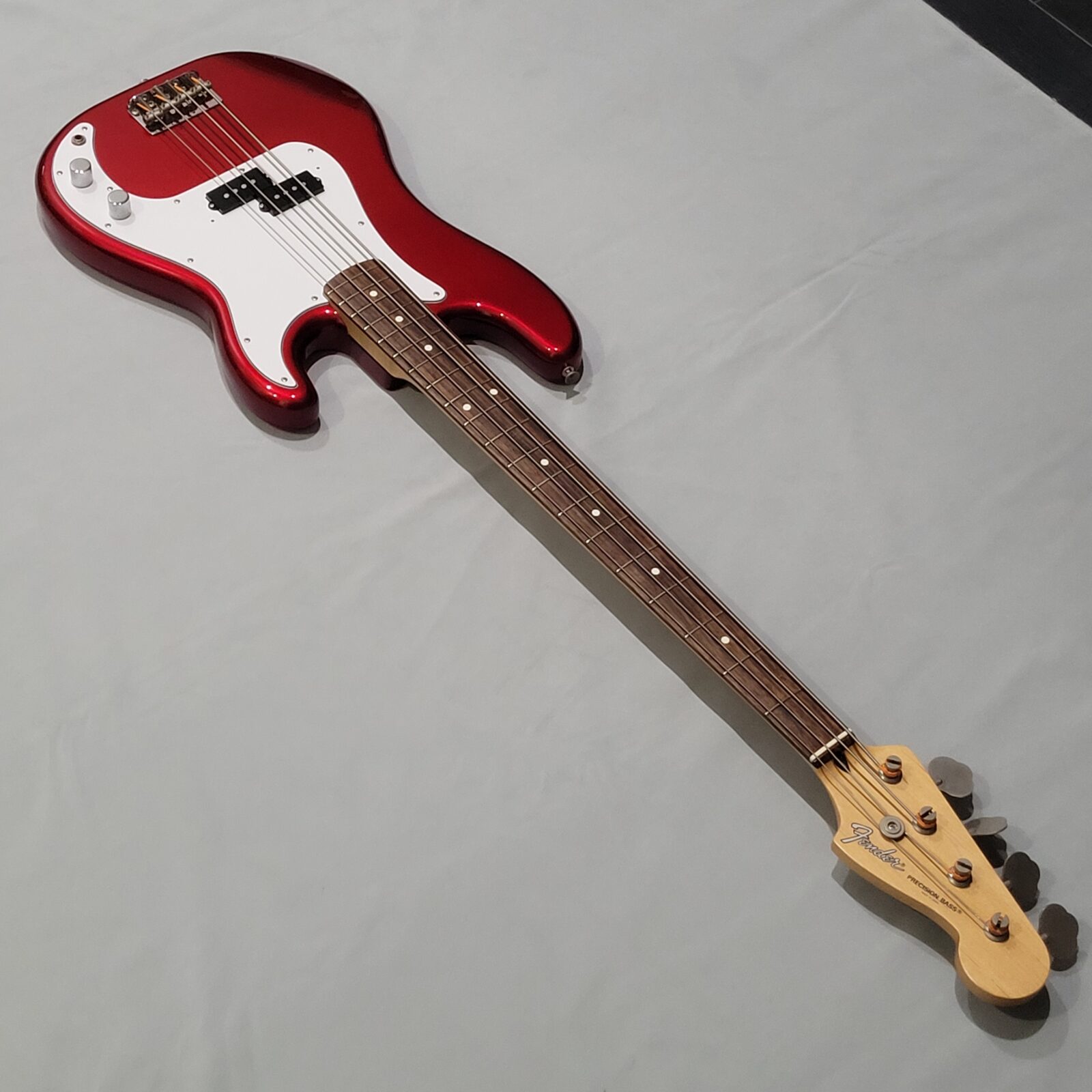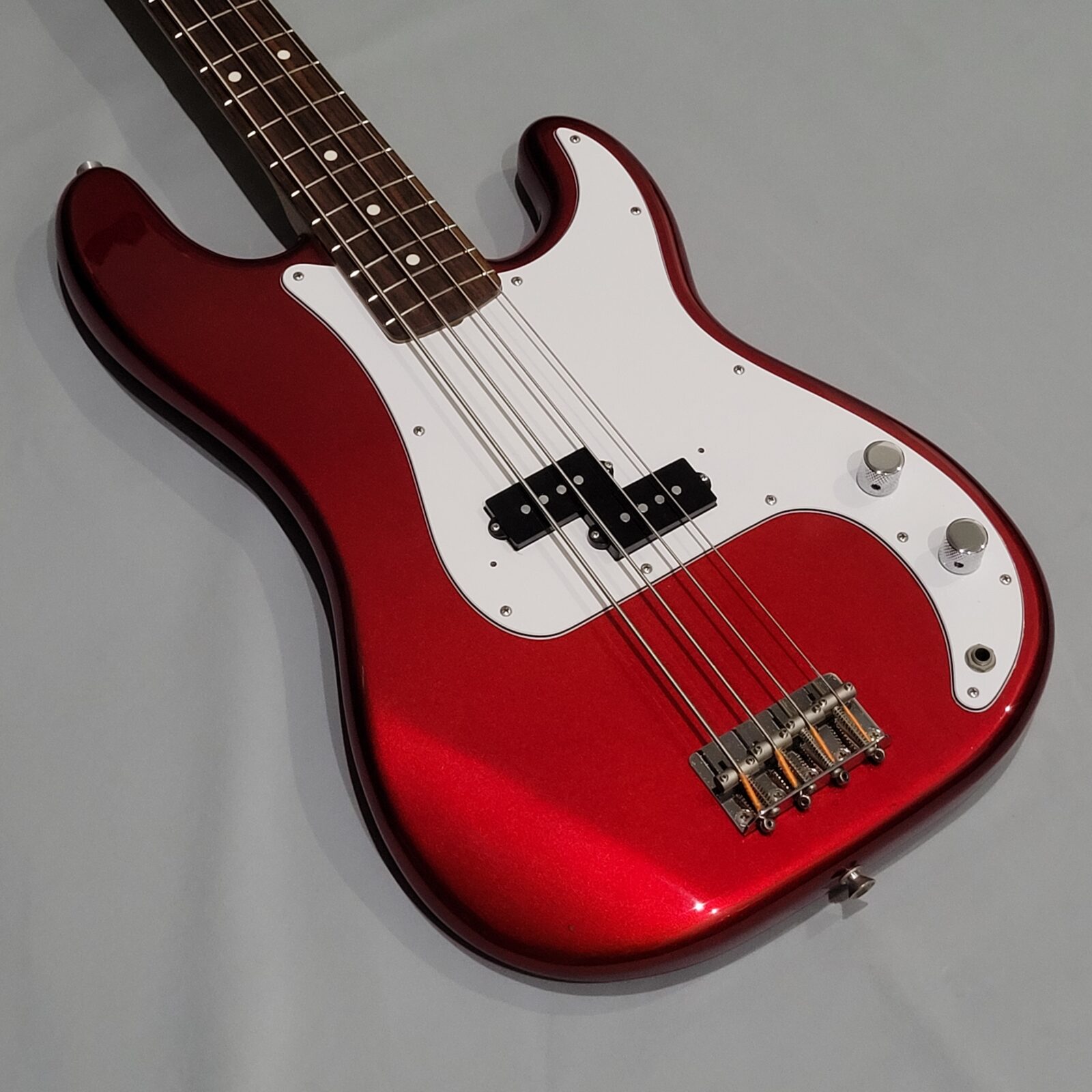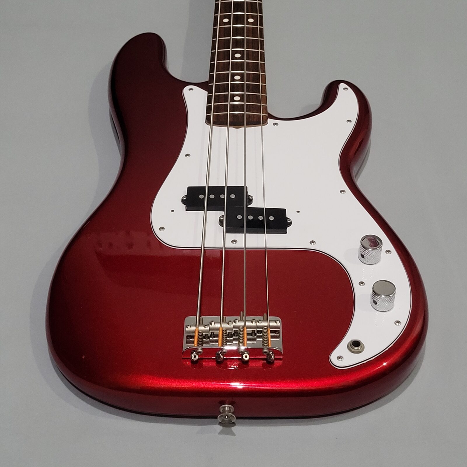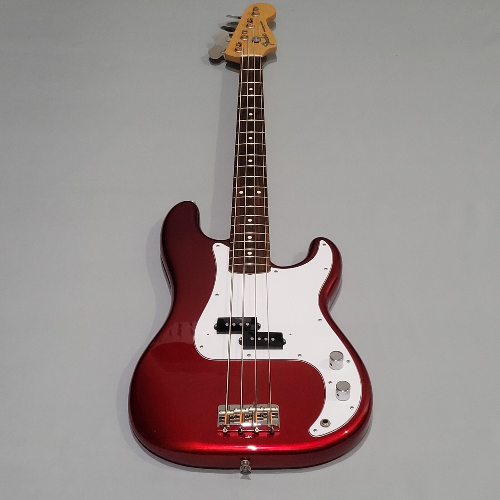 Klasyka w pięknym wydaniu – Candy Apple Red w metaliku robi robotę w tym precision bassie! Ja osobiście bym jeszcze mu wrzucił płytkę tortoise shell i byłby wtedy kompletny ogień. Specyfikacja powyżej, więc nie będę powtarzał, w basie wszystko gra, jest ustawiony, a progi są w zasadzie nowe, bo cieniutkie progi vintage style zazwyczaj mają fabrycznie wysokość 0.9-1mm, korony igła! Akcja strun ustawiona na uczciwe 2mm dla E/1,75mm dla G. Basen na elektronikę wyekranowany miedzią, P-Bass miał zrobiony kompletny manicure i pedicure. Takie SPA tylko w Gitarach Orientu!