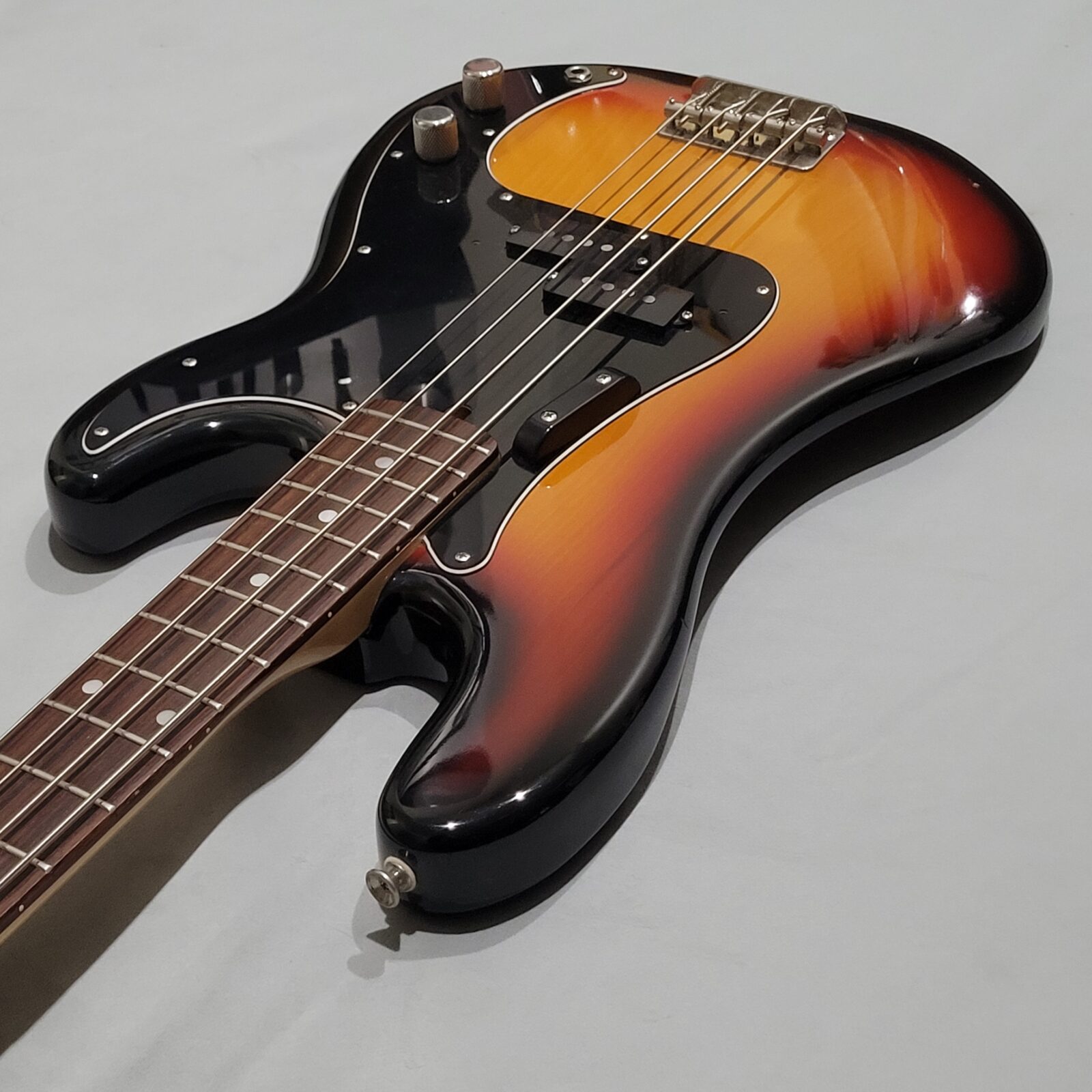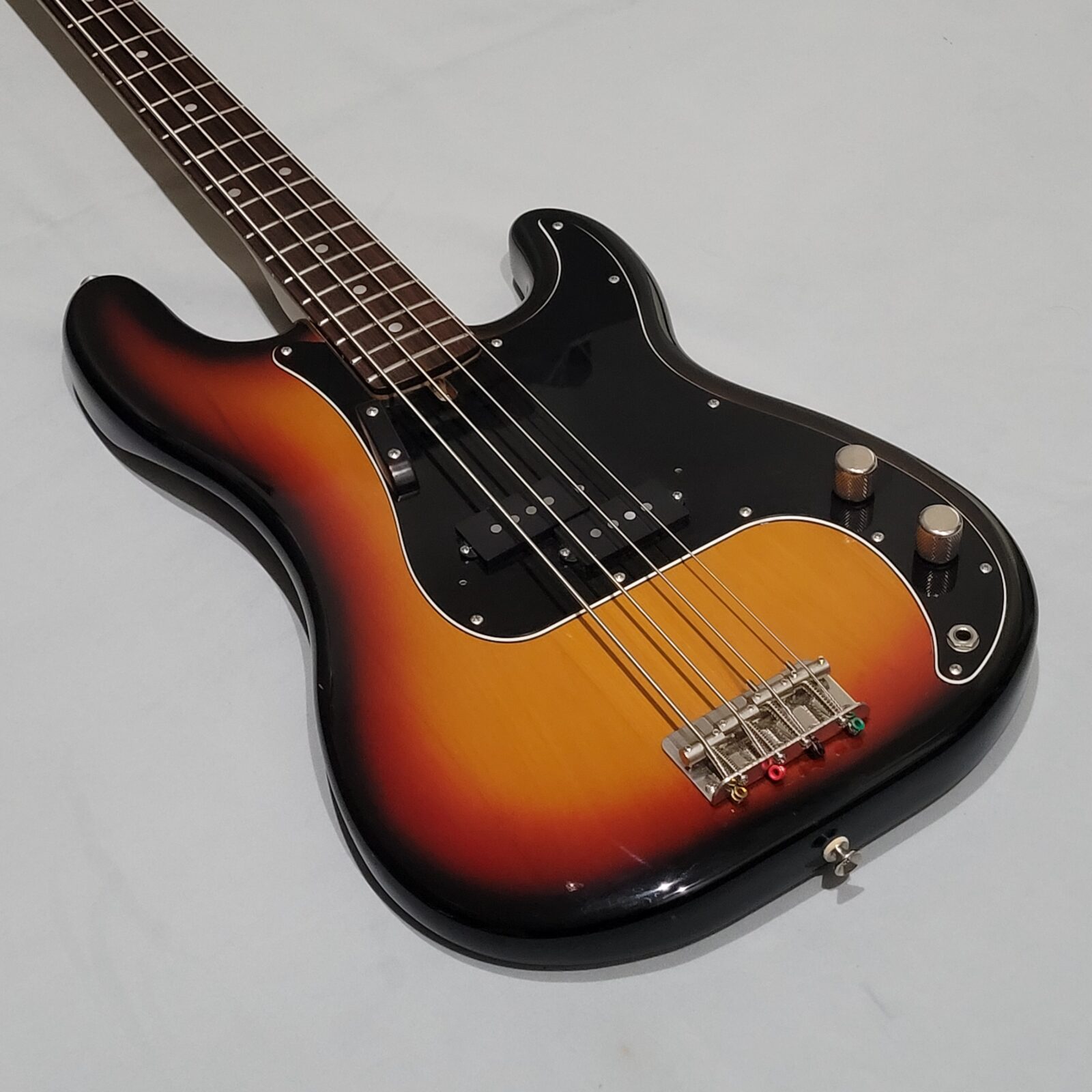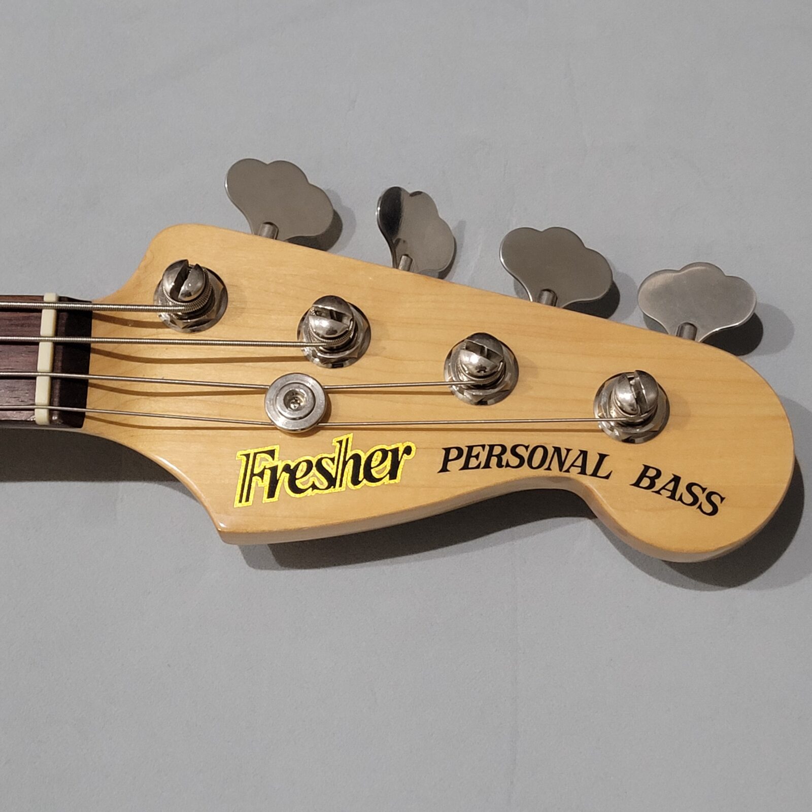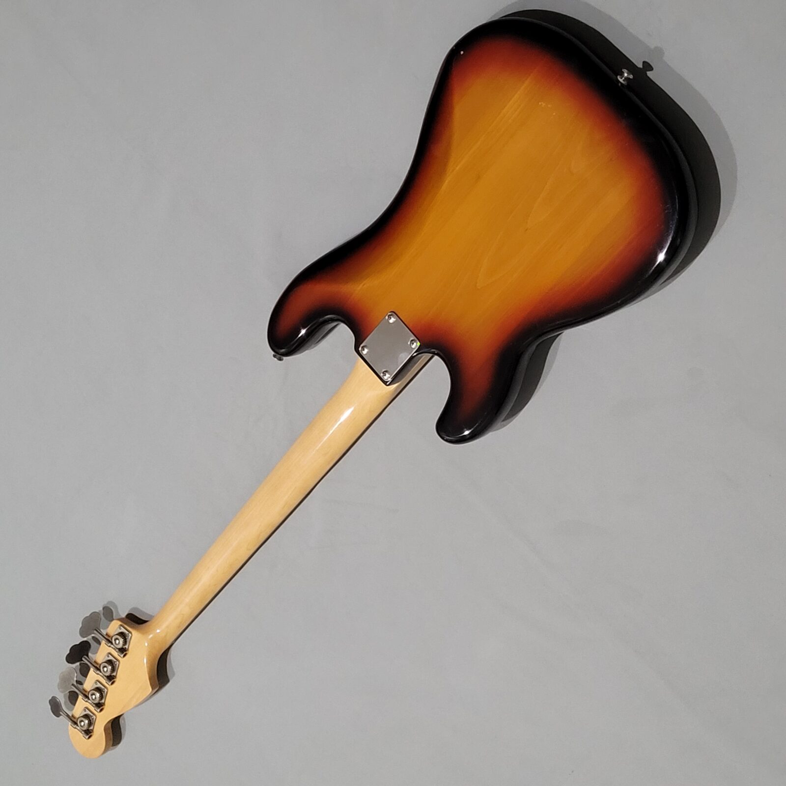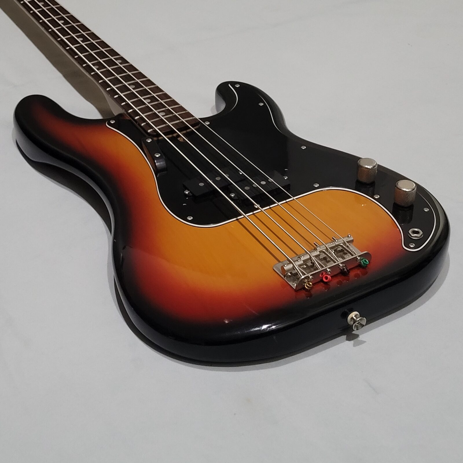 Fresher z ostatniego okresu produkcji tzw. last logo, z wyglądu typowy precision bass 70’s style, czyli trzykolorowy sunburst z czarną płytką maskującą. Za podstrunnicę robi solidny kawał palisandru. Korpus na moje oko jest z olchy. Co by nie mówić, instrument jest po prostu ładny, do tego po pełnym SPA u mnie! Ale powiem szczerze, że ta gitara wyjściowo była w takim stanie, jaki się rzadko zdarza, to taki typowy leżak futerałowy, który musiał być grany okazjonalnie w domu. Akcja strun ustawiona 2.25mm/2.0 E/G. Wiosło po setupie, pracach upiększających i ekranowaniu.