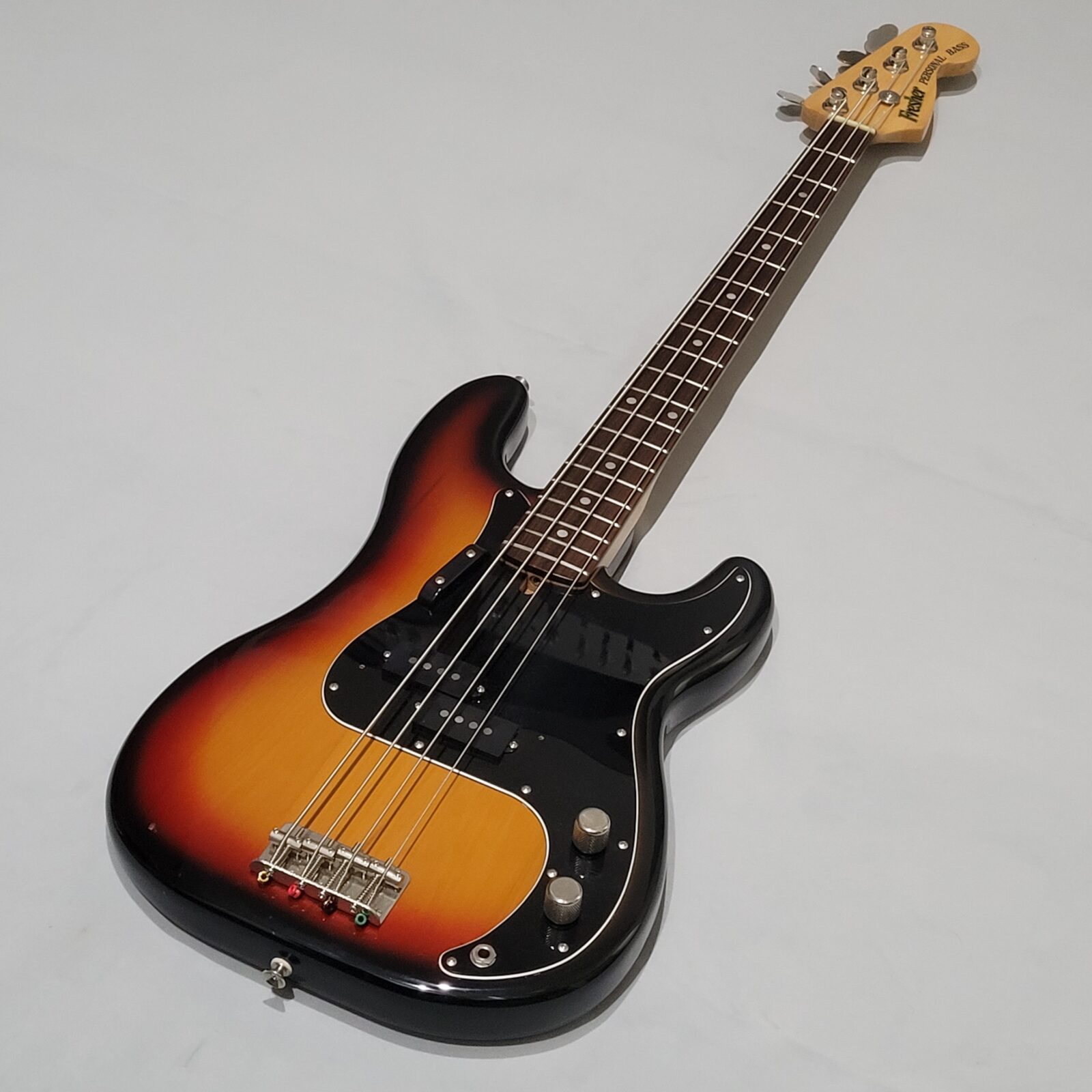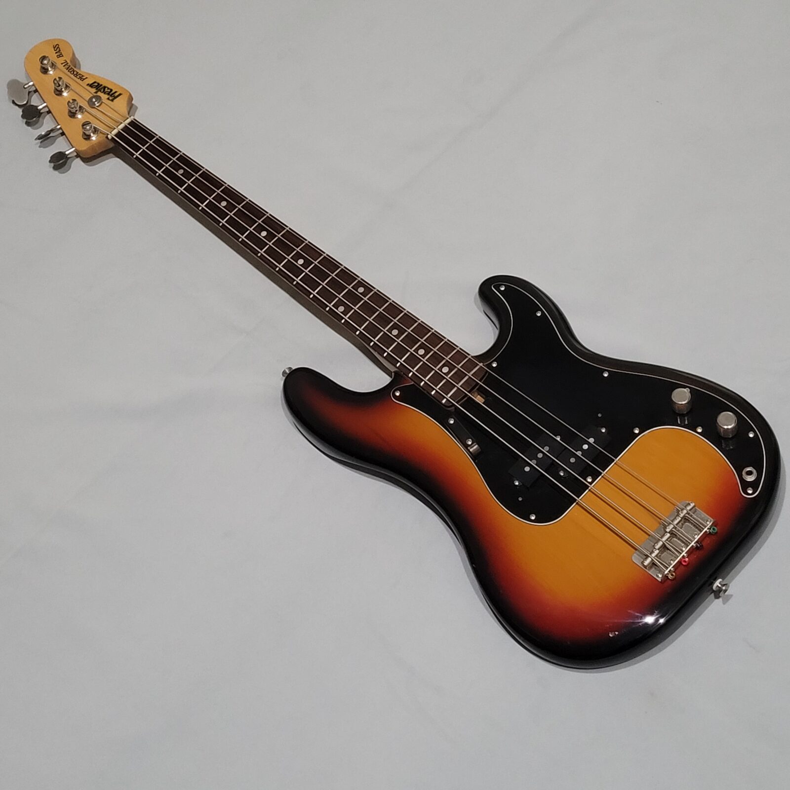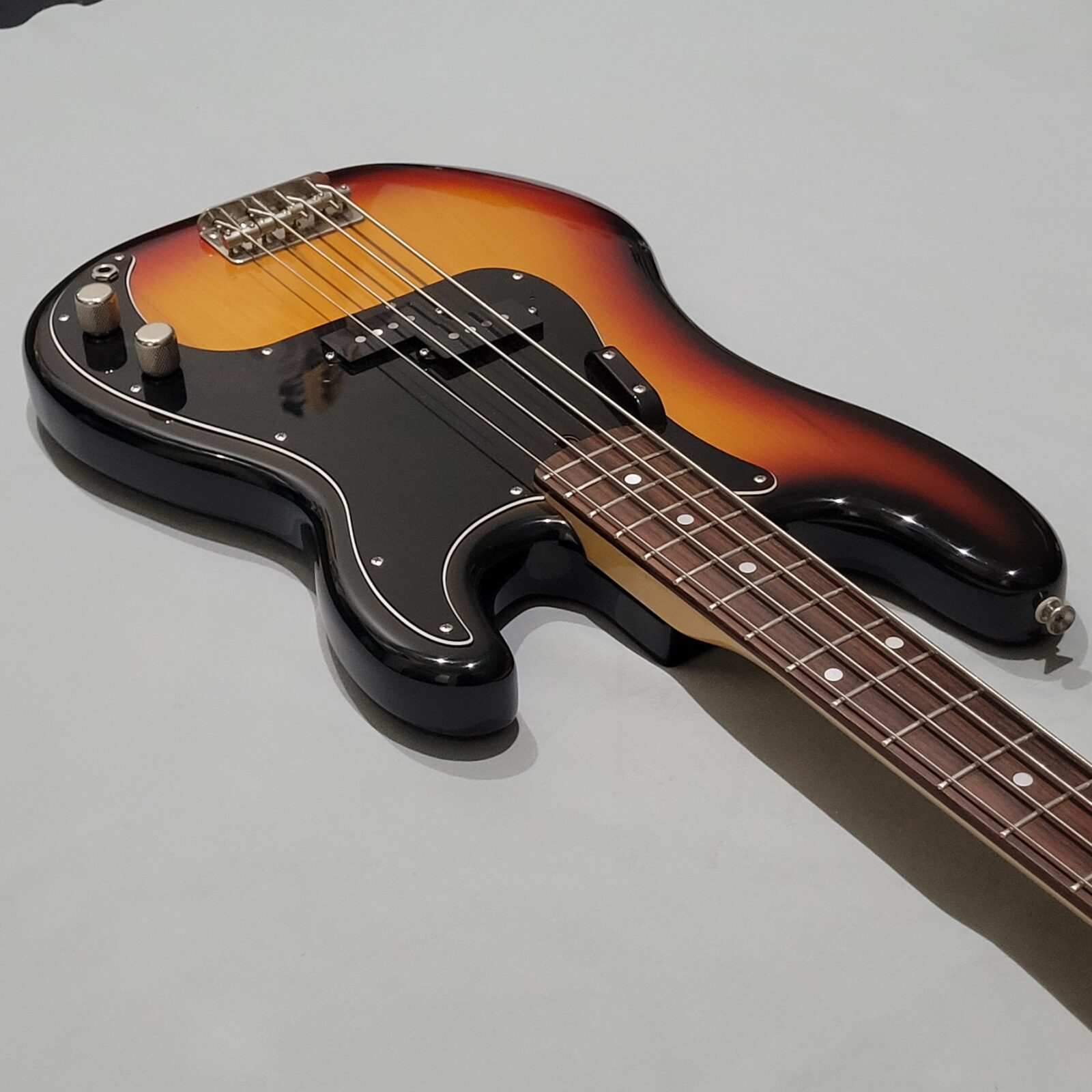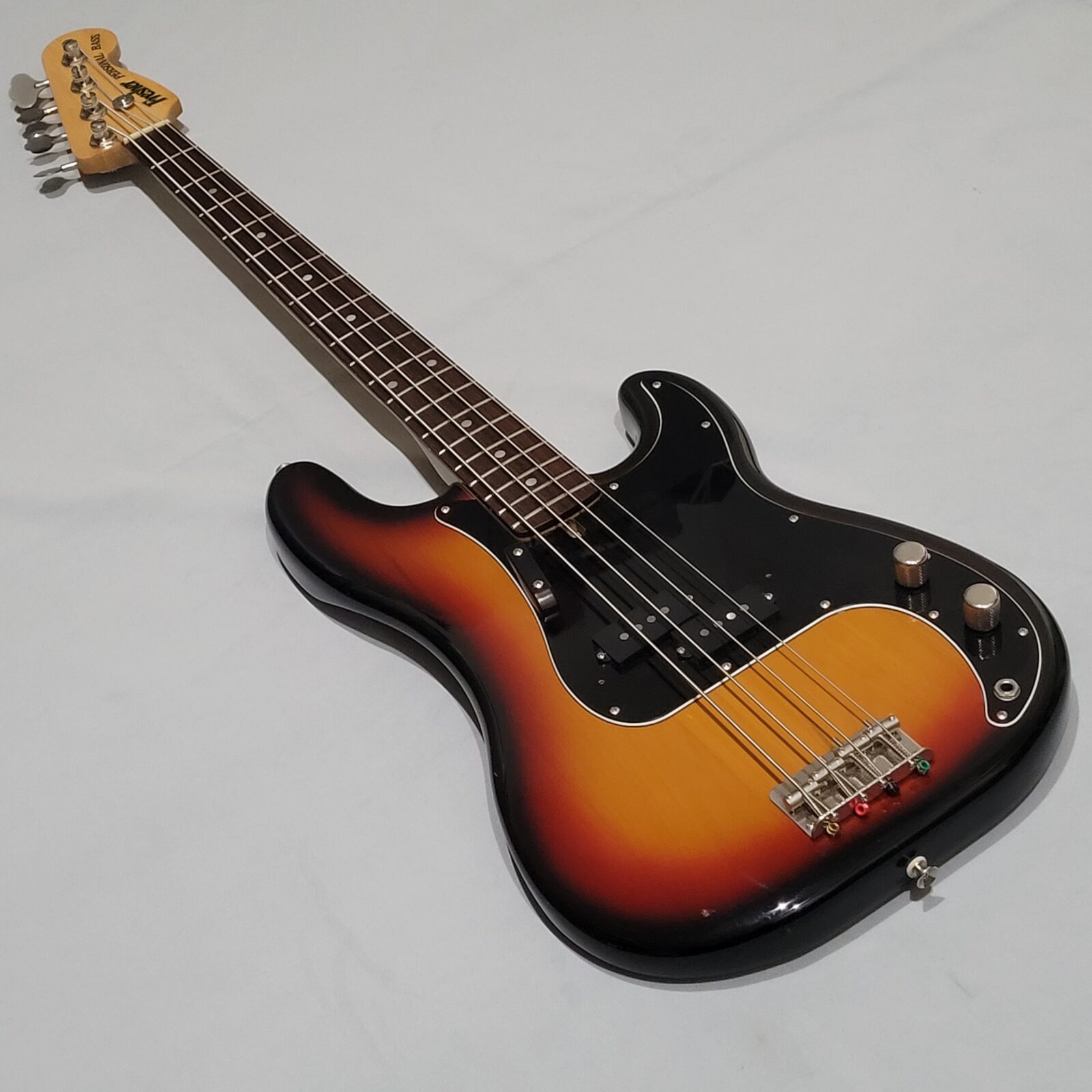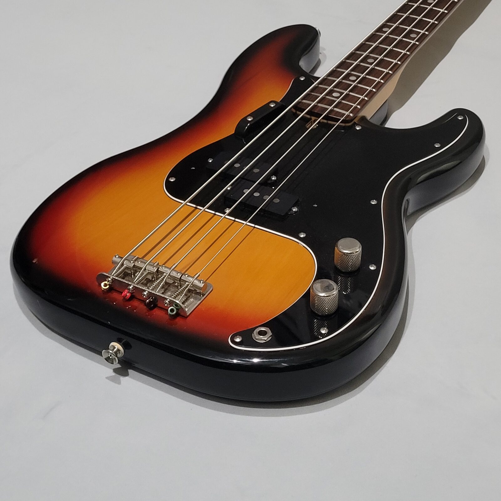 Fresher z ostatniego okresu produkcji tzw. last logo, z wyglądu typowy precision bass 70’s style, czyli trzykolorowy sunburst z czarną płytką maskującą. Za podstrunnicę robi solidny kawał palisandru. Korpus na moje oko jest z olchy. Co by nie mówić, instrument jest po prostu ładny, do tego po pełnym SPA u mnie! Ale powiem szczerze, że ta gitara wyjściowo była w takim stanie, jaki się rzadko zdarza, to taki typowy leżak futerałowy, który musiał być grany okazjonalnie w domu. Akcja strun ustawiona 2.25mm/2.0 E/G. Wiosło po setupie, pracach upiększających i ekranowaniu.