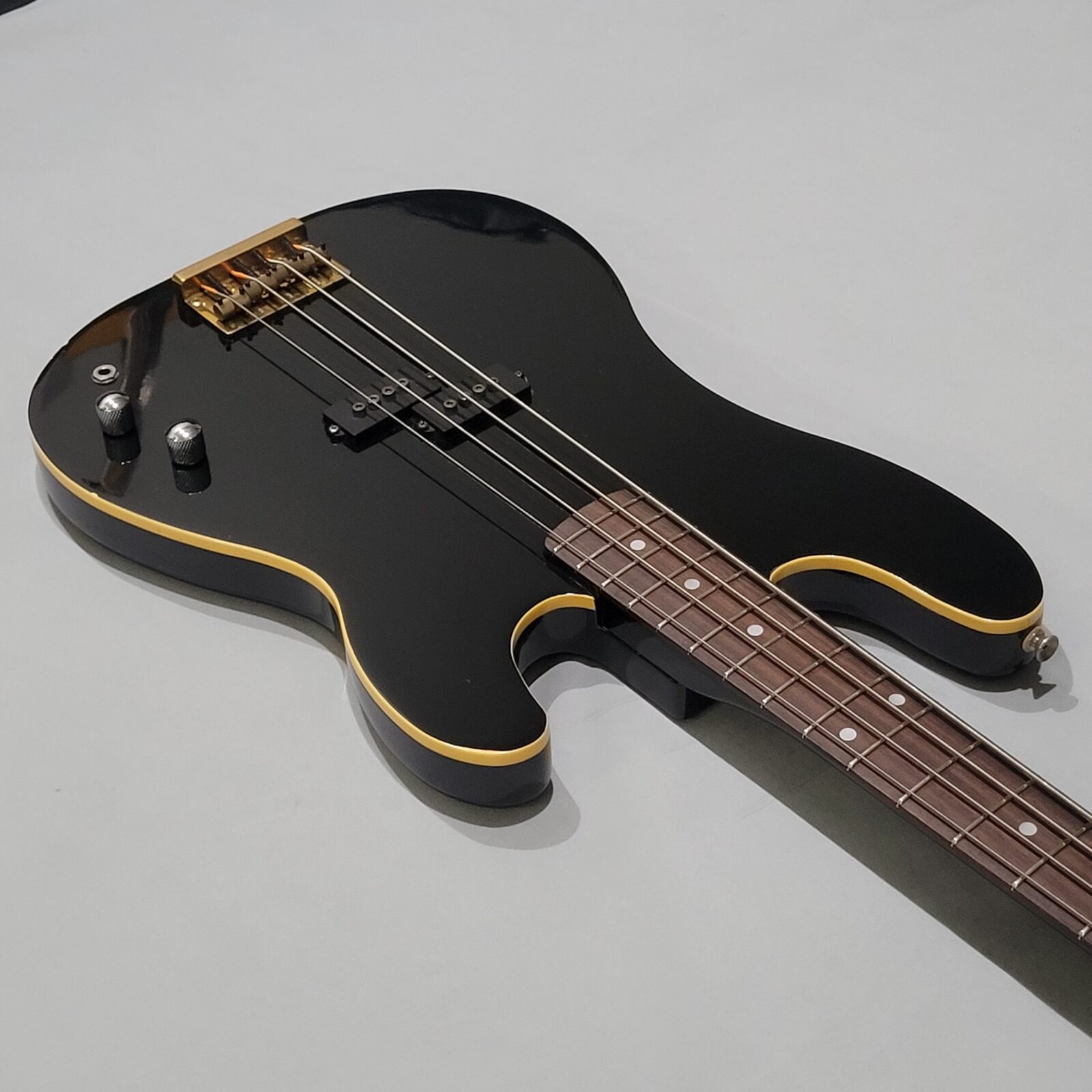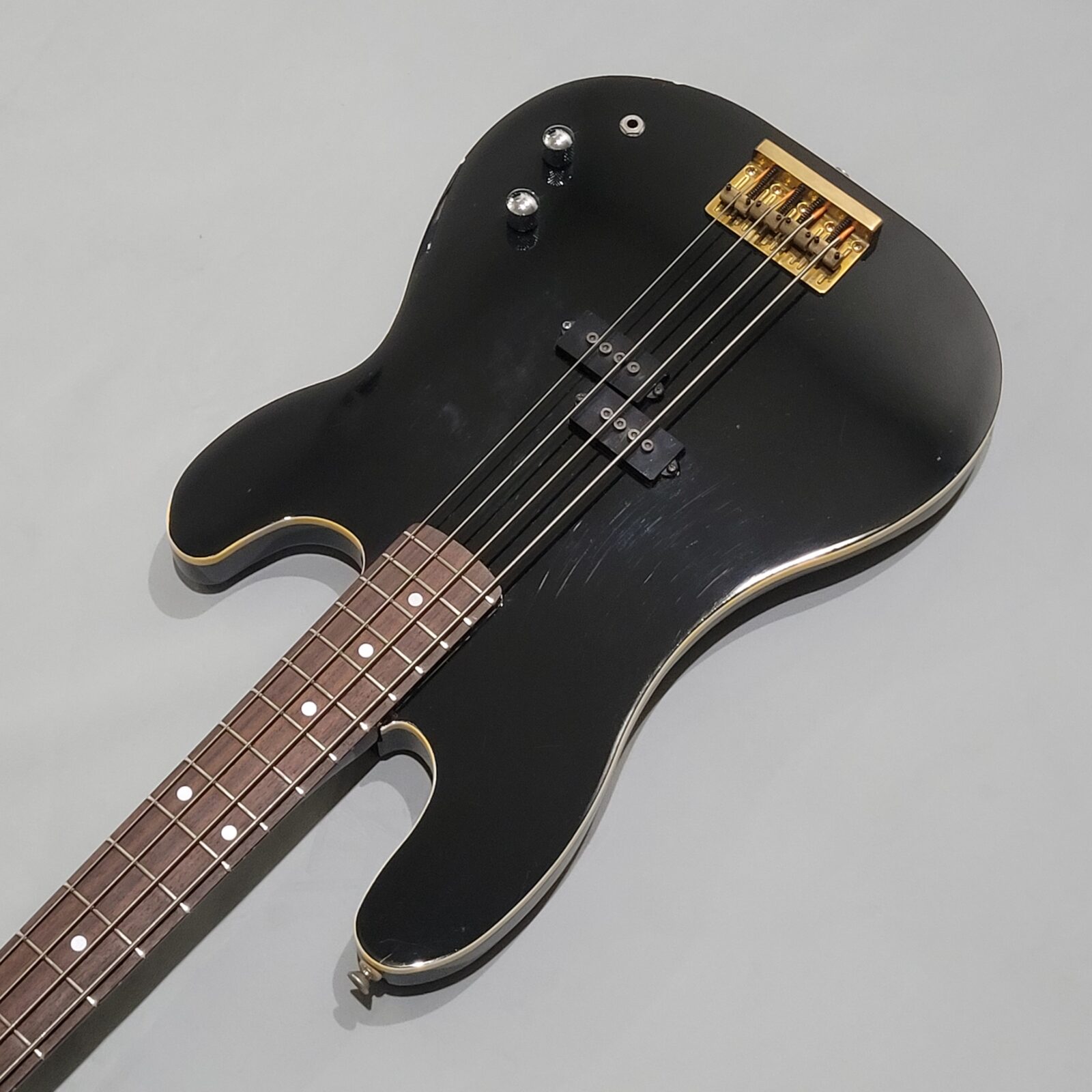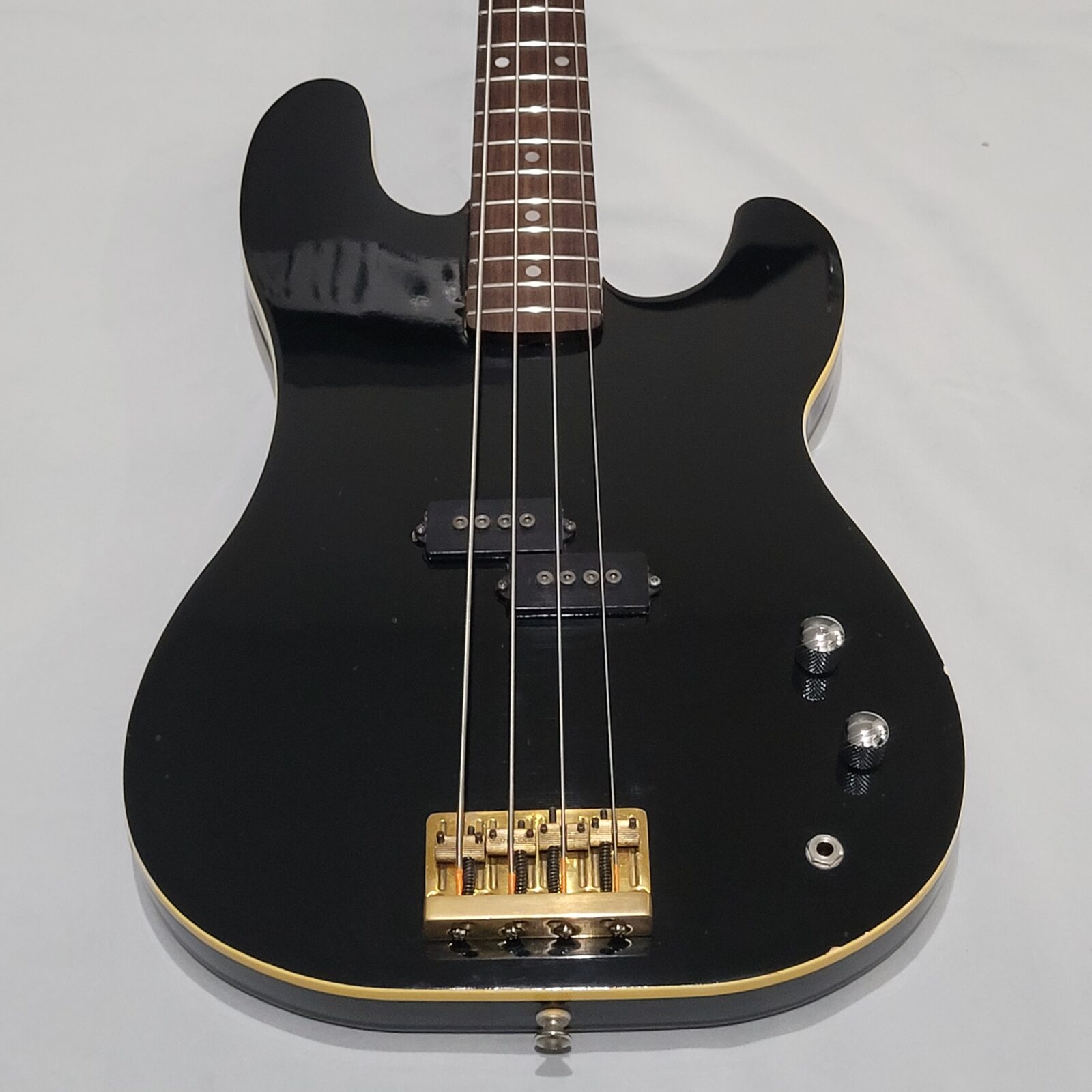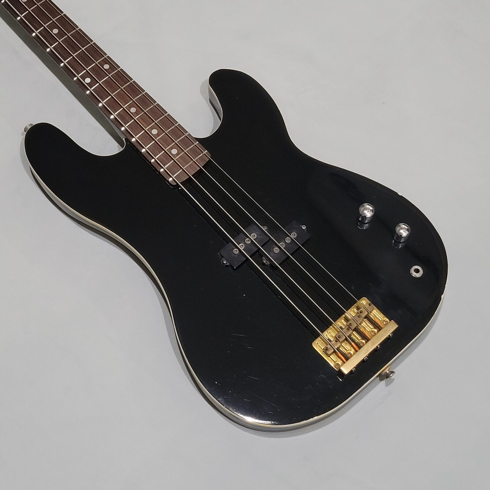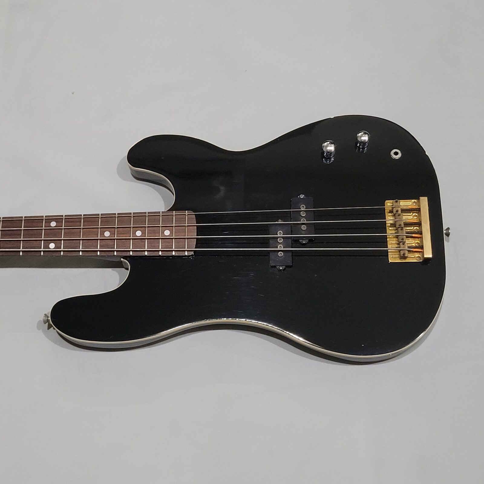Czy to Fender Aerodyne? Otóż nie, w czasach kiedy zrobiono tę gitarę, Fender nie myślał nawet o serii Aerodyne. Z fabyki Chushin Gakki w połowie lat 80 wypuszczali takie cudo jak FRS (Fresher Refined Series), czyli linię gitar i basów, które miały być nowoczesne jak na tamte lata i miały nadawać się do bardzo modnego wtedy metalowego grania. Czy tak jest w przypadku tej gitary? Owszem, pickup z potężnymi nadbiegunnikami i outputem oraz mahoniowe (tak domniemywam po kieszeni gryfu) body robią robotę. Ten bas świetnie dogaduje się z kostką i przesterem.
