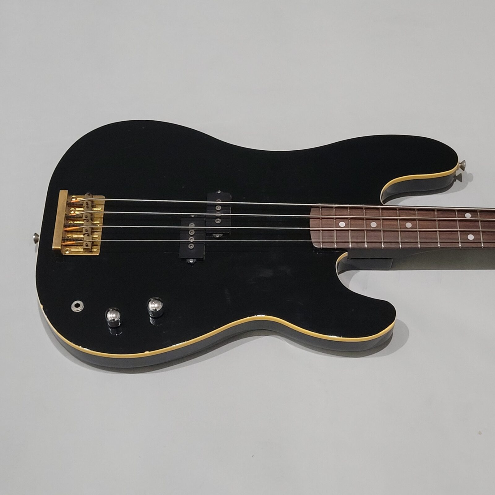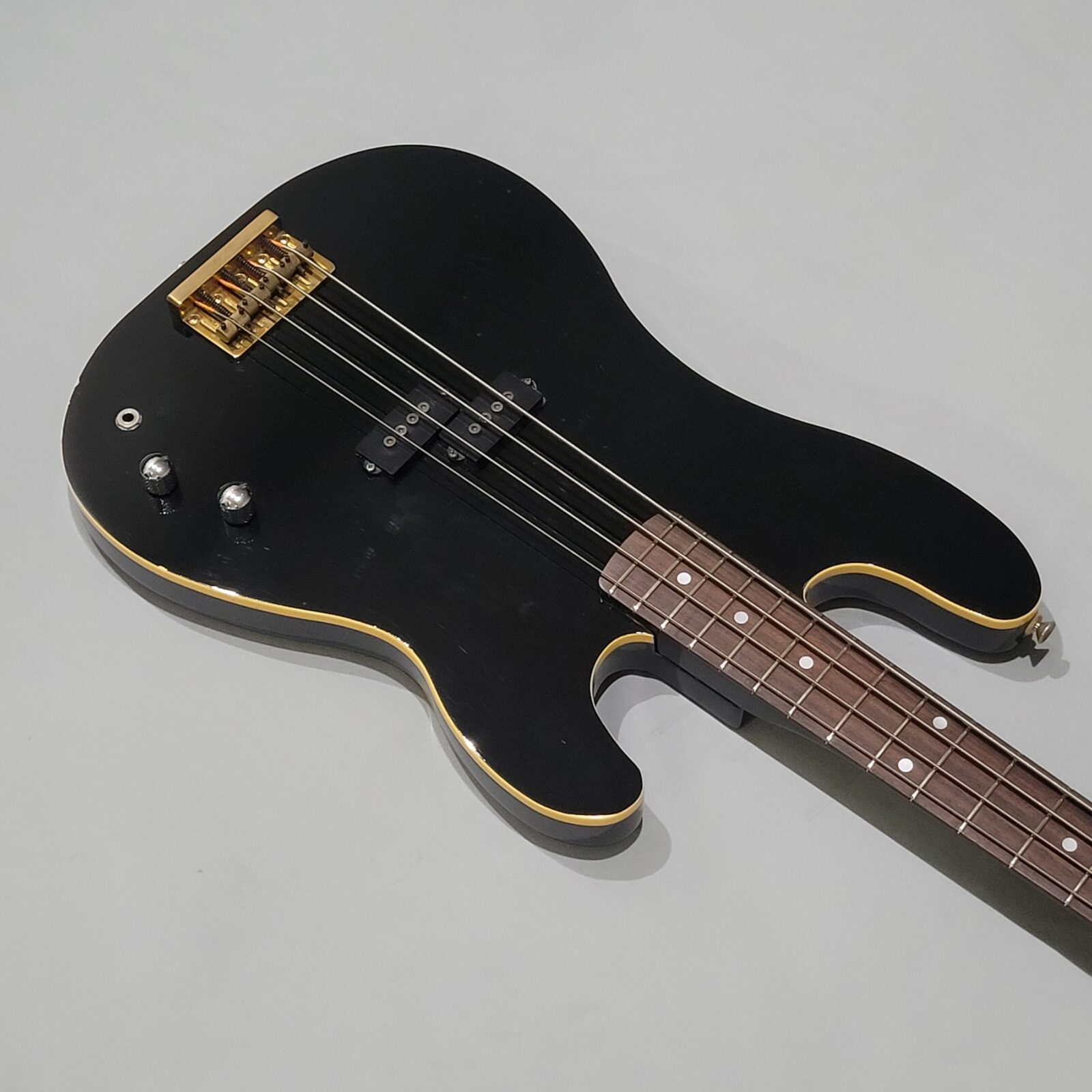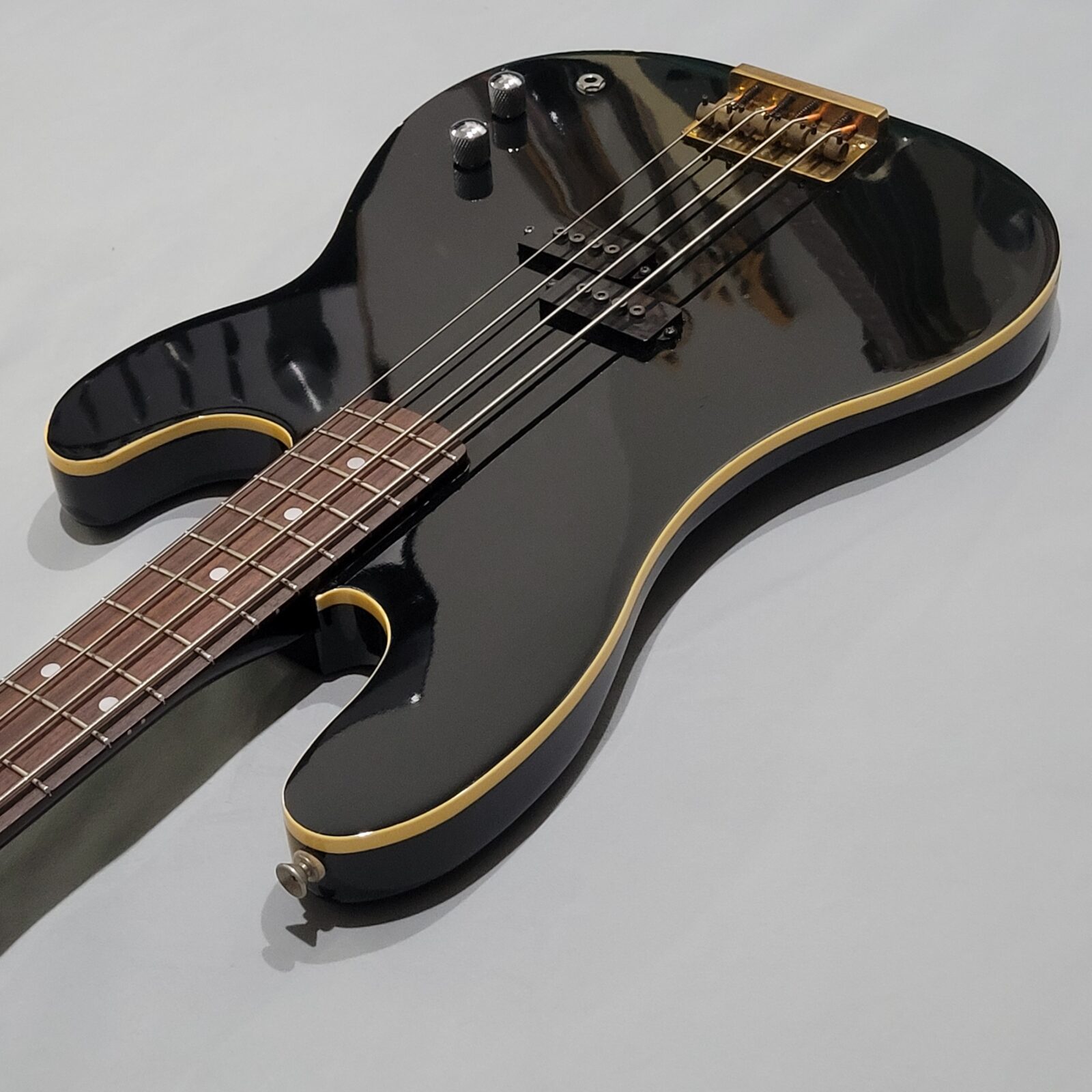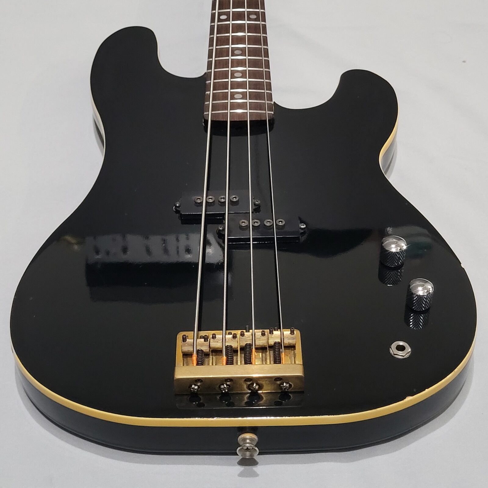 Czy to Fender Aerodyne? Otóż nie, w czasach kiedy zrobiono tę gitarę, Fender nie myślał nawet o serii Aerodyne. Z fabyki Chushin Gakki w połowie lat 80 wypuszczali takie cudo jak FRS (Fresher Refined Series), czyli linię gitar i basów, które miały być nowoczesne jak na tamte lata i miały nadawać się do bardzo modnego wtedy metalowego grania. Czy tak jest w przypadku tej gitary? Owszem, pickup z potężnymi nadbiegunnikami i outputem oraz mahoniowe (tak domniemywam po kieszeni gryfu) body robią robotę. Ten bas świetnie dogaduje się z kostką i przesterem.