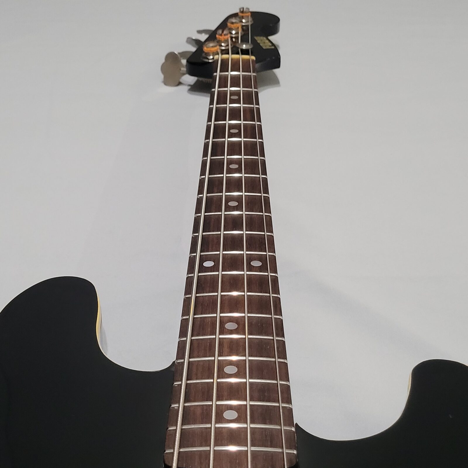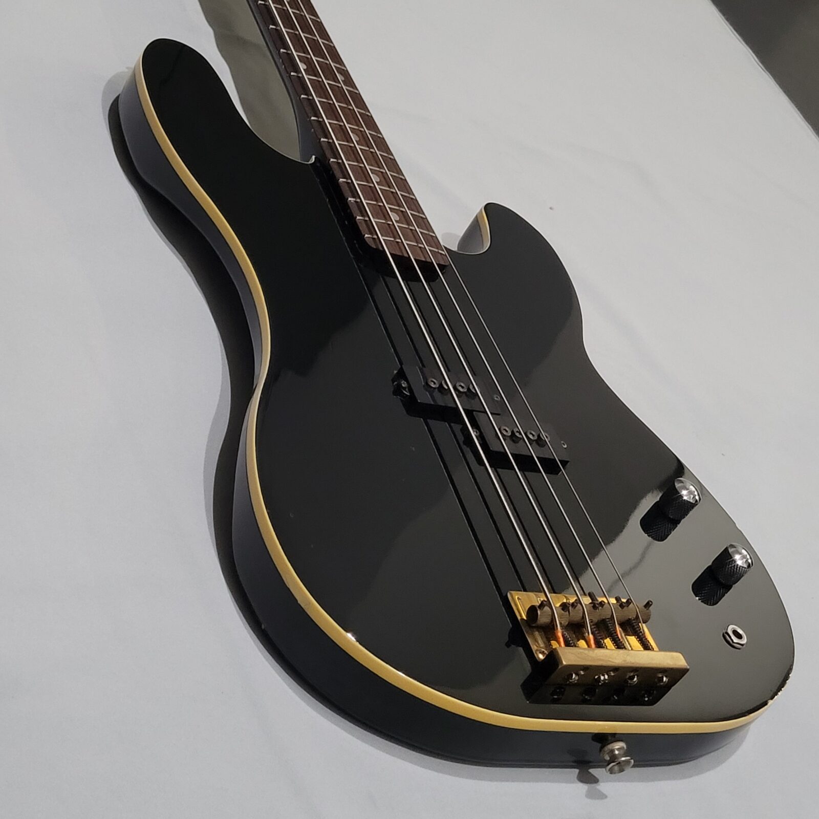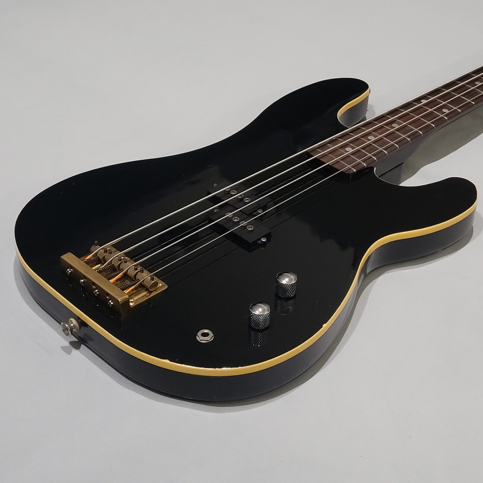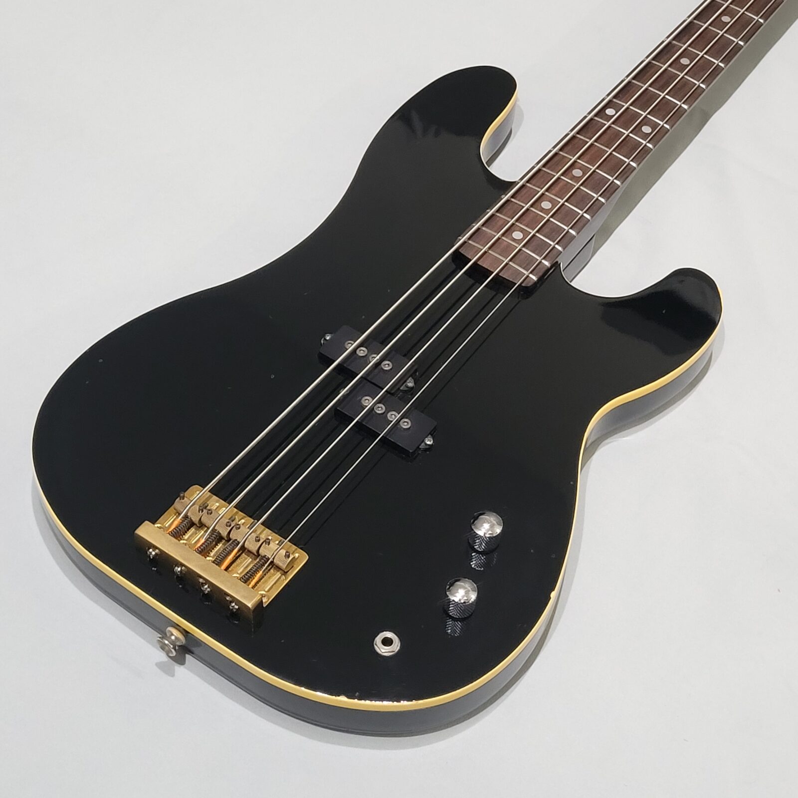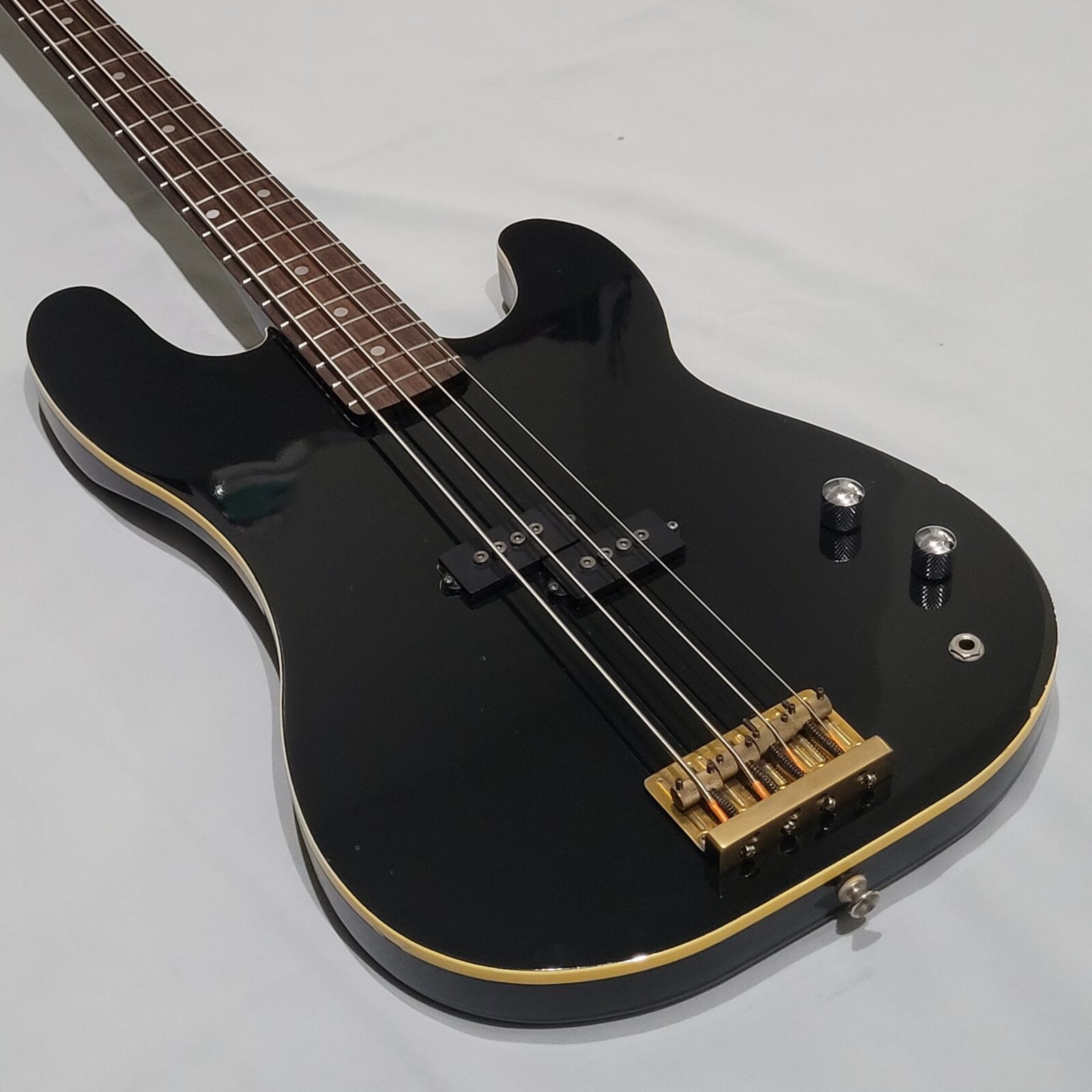 Czy to Fender Aerodyne? Otóż nie, w czasach kiedy zrobiono tę gitarę, Fender nie myślał nawet o serii Aerodyne. Z fabyki Chushin Gakki w połowie lat 80 wypuszczali takie cudo jak FRS (Fresher Refined Series), czyli linię gitar i basów, które miały być nowoczesne jak na tamte lata i miały nadawać się do bardzo modnego wtedy metalowego grania. Czy tak jest w przypadku tej gitary? Owszem, pickup z potężnymi nadbiegunnikami i outputem oraz mahoniowe (tak domniemywam po kieszeni gryfu) body robią robotę. Ten bas świetnie dogaduje się z kostką i przesterem.