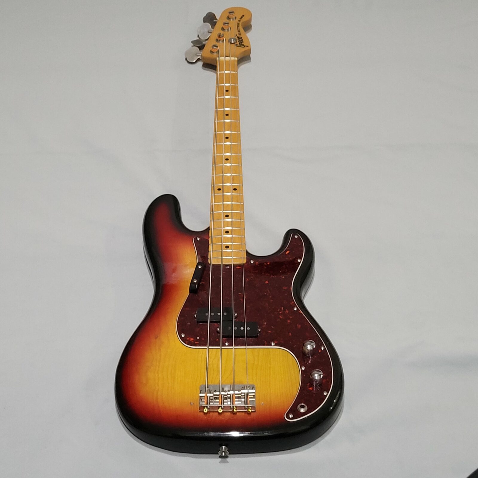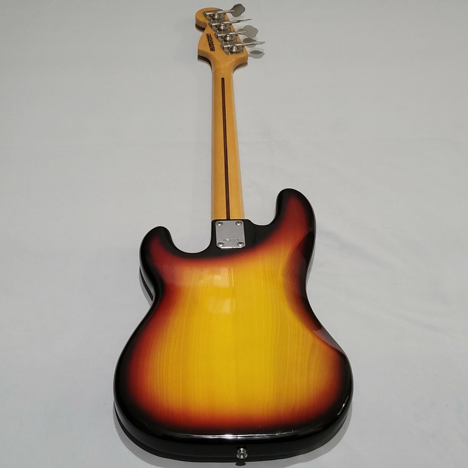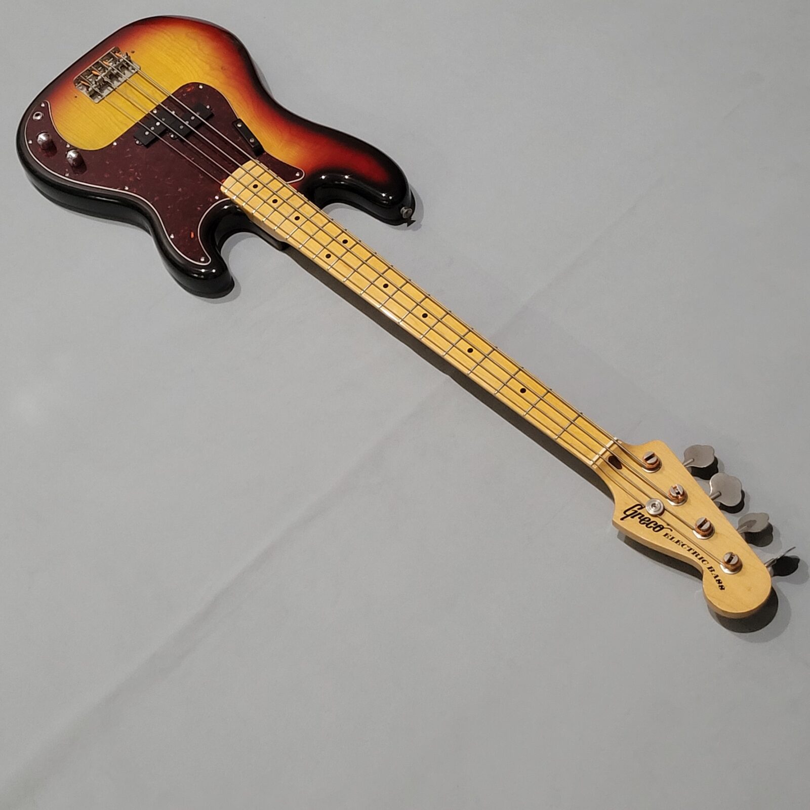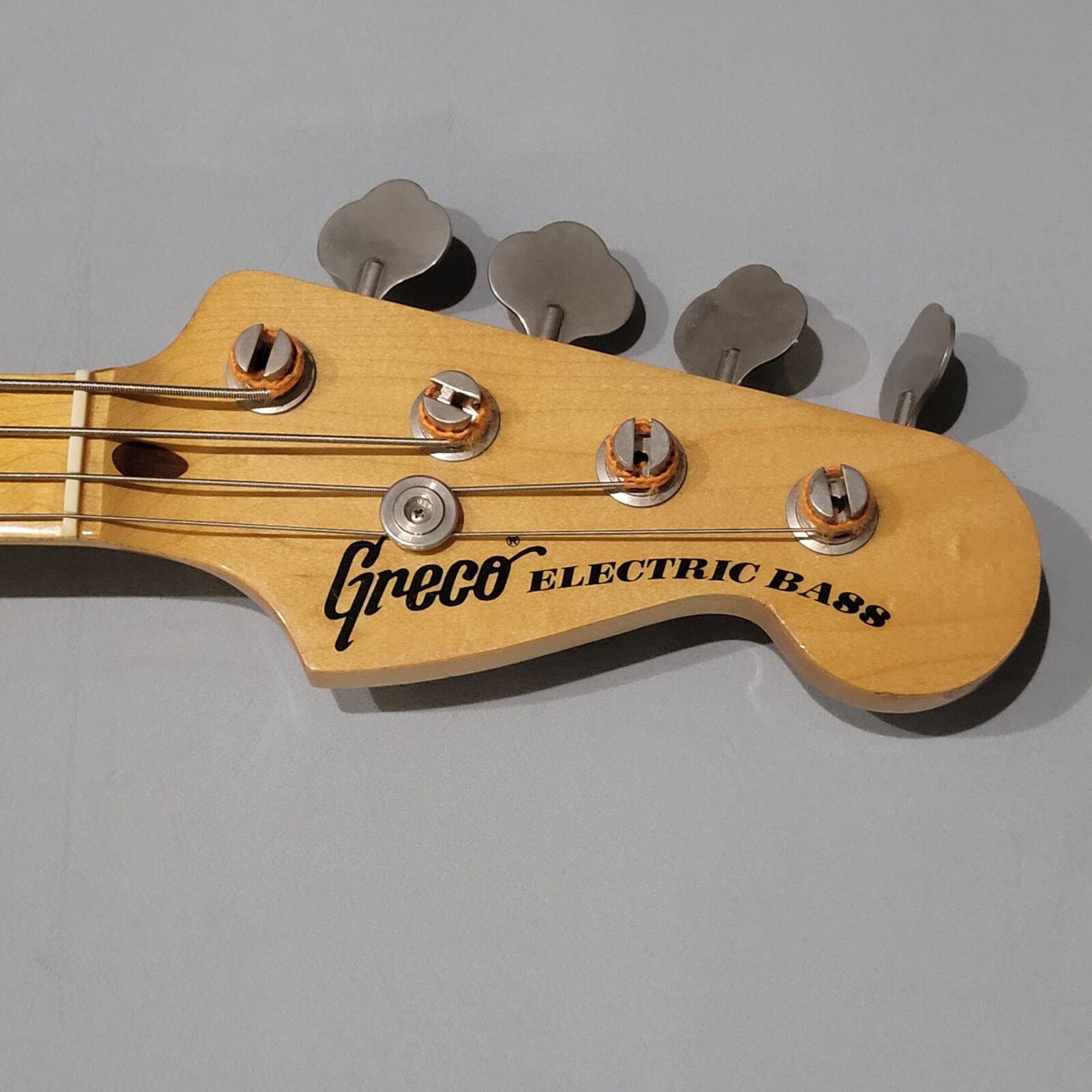 Greco Electric Bass z 1976 roku w klasycznym 3-tone sunburst, z wyglądu typowo 70’s. Gryf z podstrunnicą to jeden kawałek, monolit. Wiosełko jak na prawie 50 lat trzyma się całkiem zdrowo! Technikalia powyżej. Wiosło po setupie, pracach upiększających i ekranowaniu.