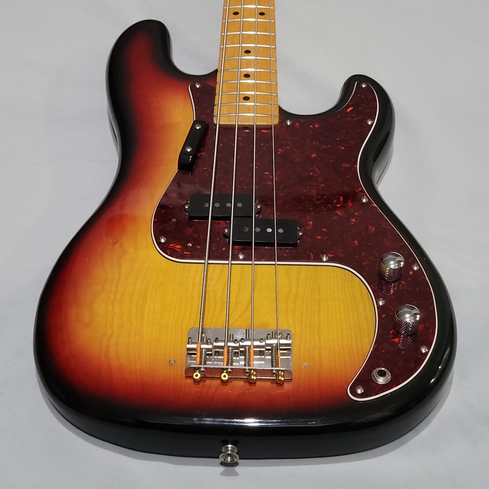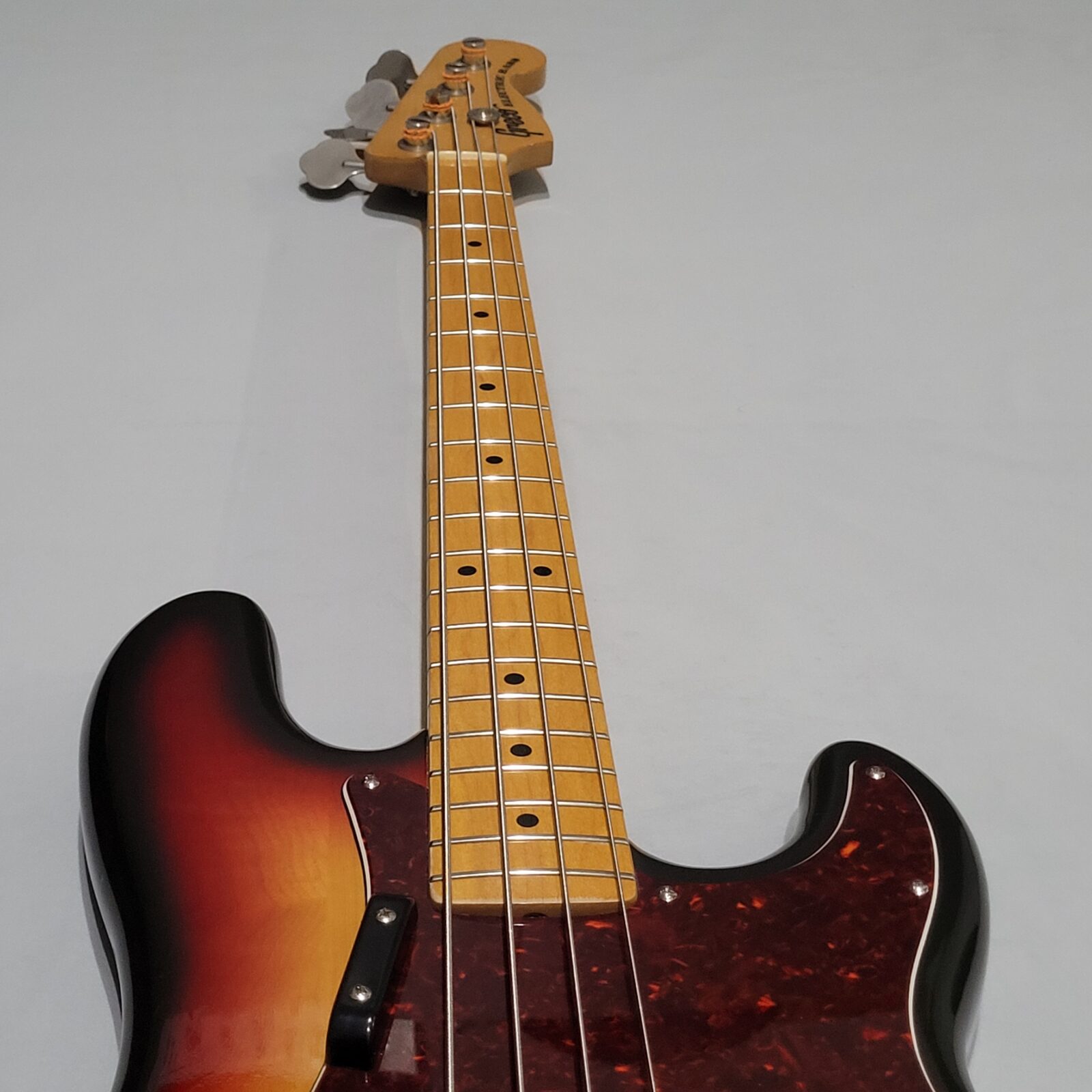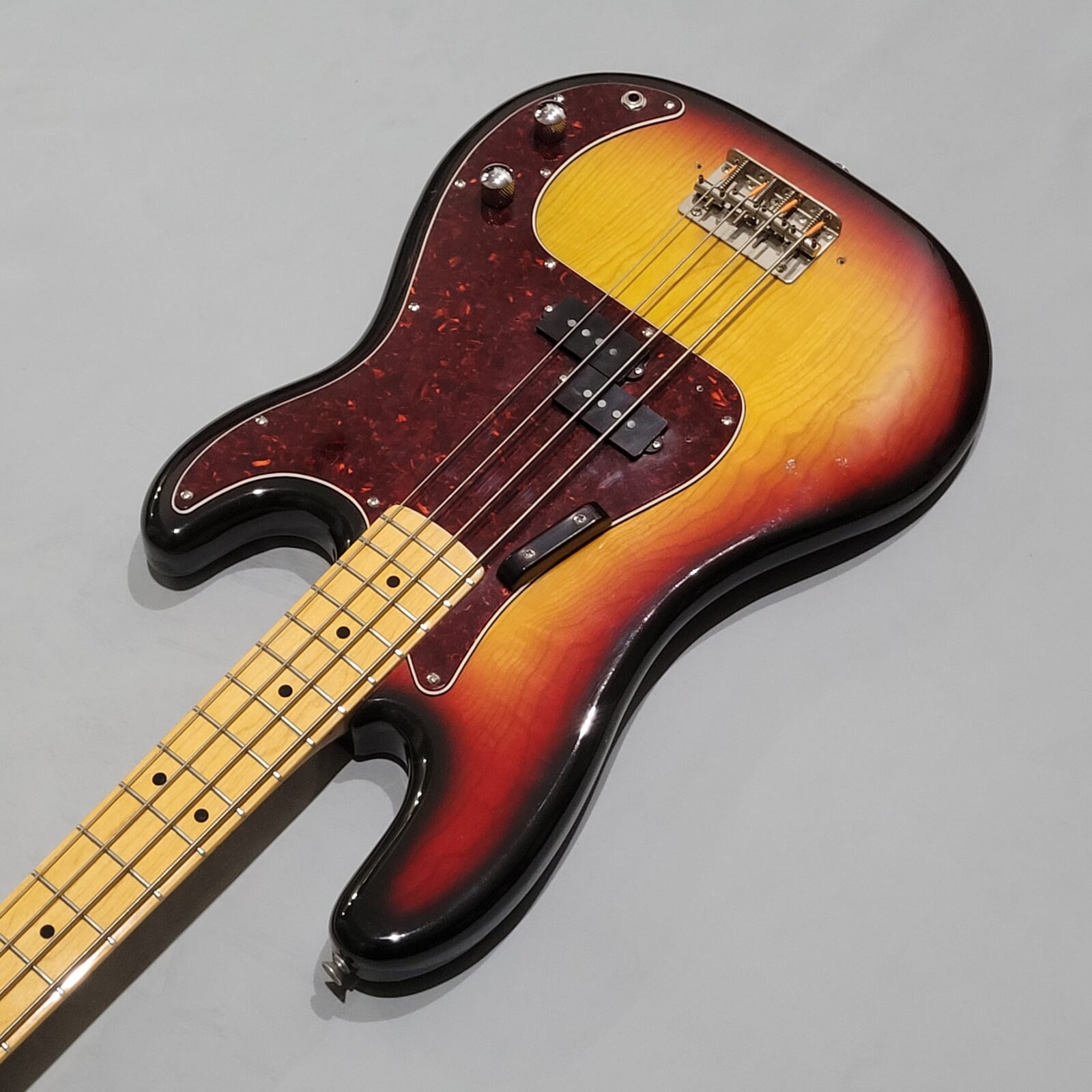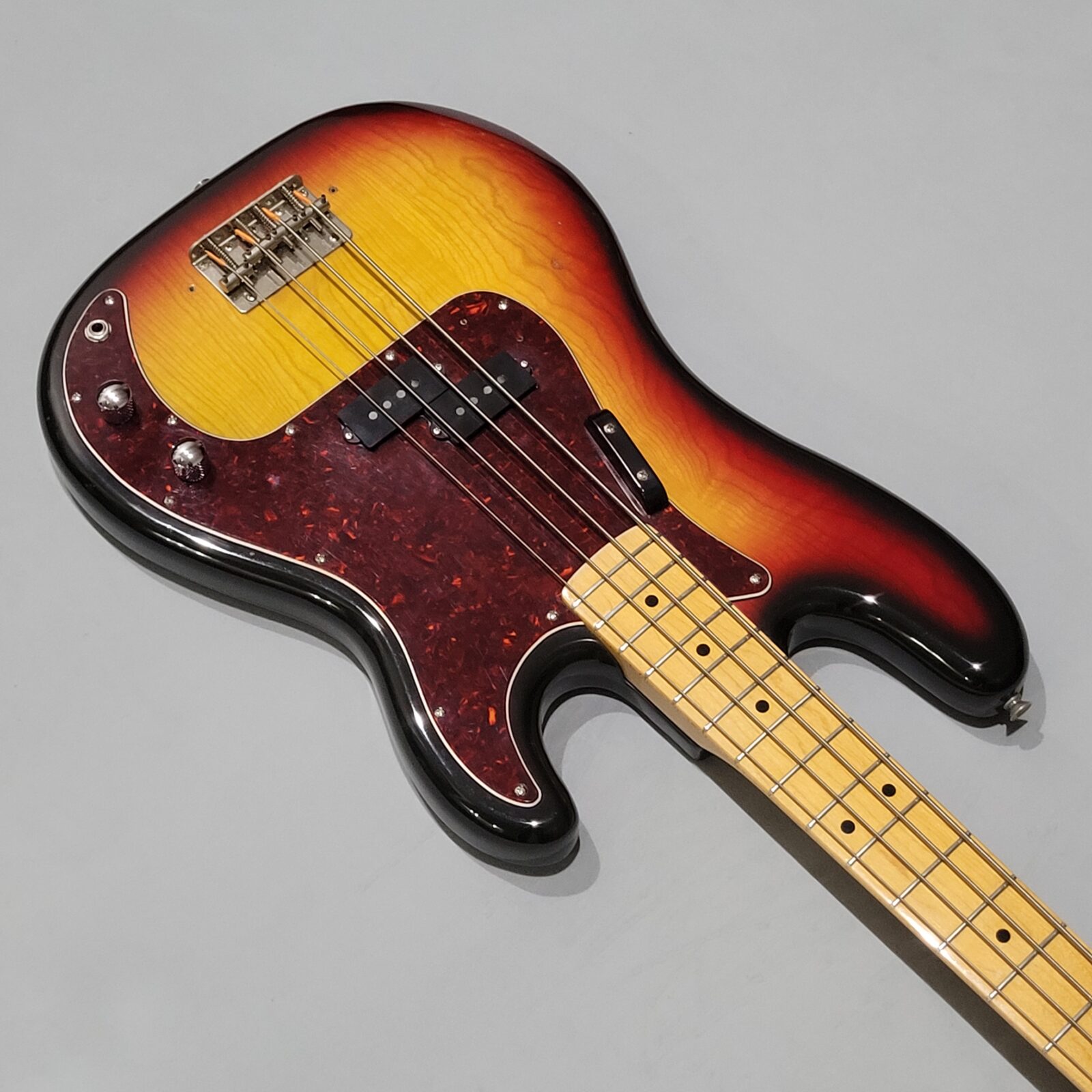 Greco Electric Bass z 1976 roku w klasycznym 3-tone sunburst, z wyglądu typowo 70’s. Gryf z podstrunnicą to jeden kawałek, monolit. Wiosełko jak na prawie 50 lat trzyma się całkiem zdrowo! Technikalia powyżej. Wiosło po setupie, pracach upiększających i ekranowaniu.