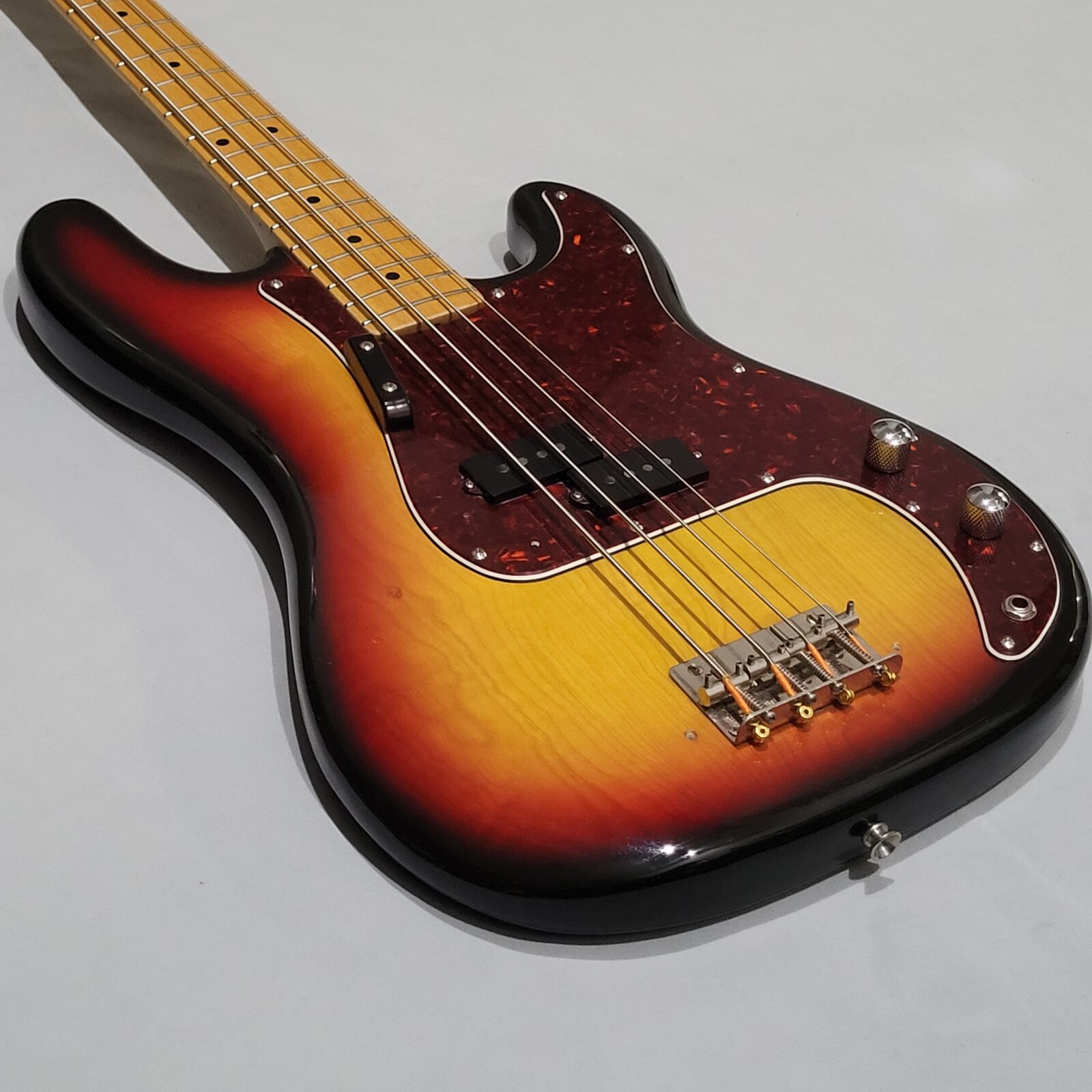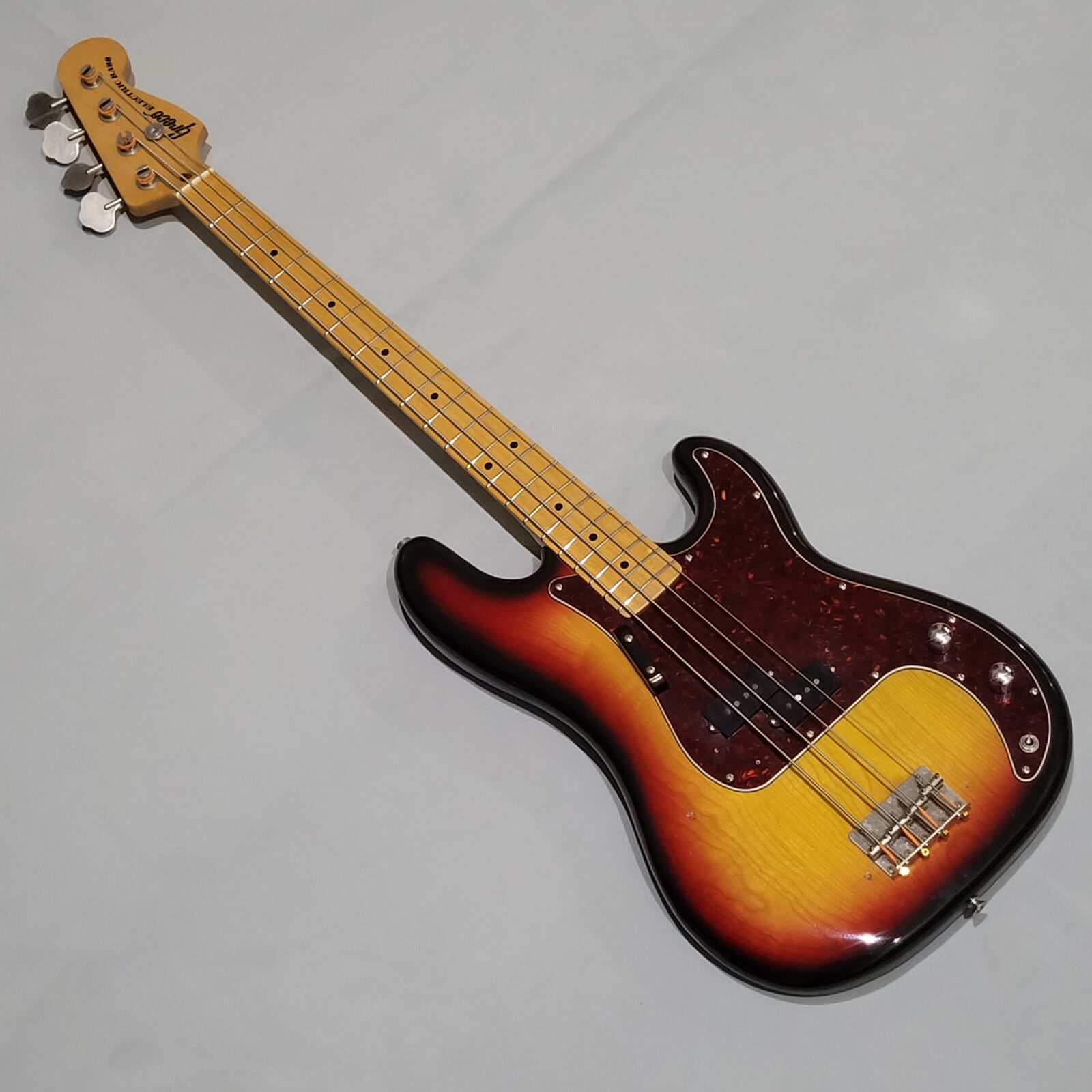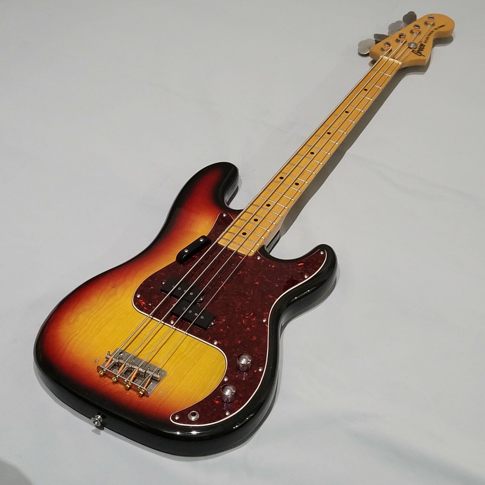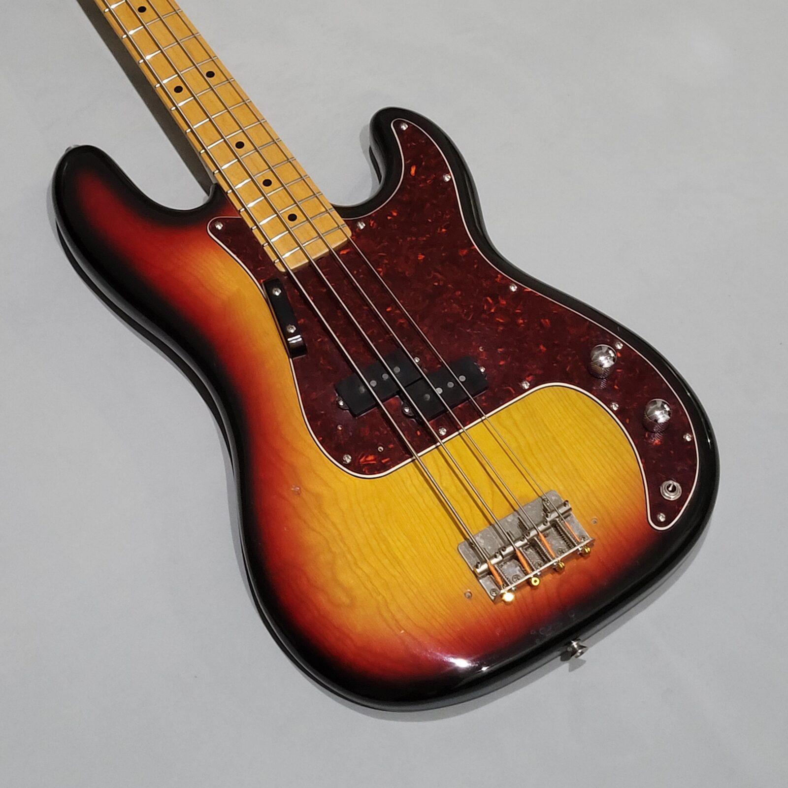 Greco Electric Bass z 1976 roku w klasycznym 3-tone sunburst, z wyglądu typowo 70’s. Gryf z podstrunnicą to jeden kawałek, monolit. Wiosełko jak na prawie 50 lat trzyma się całkiem zdrowo! Technikalia powyżej. Wiosło po setupie, pracach upiększających i ekranowaniu.