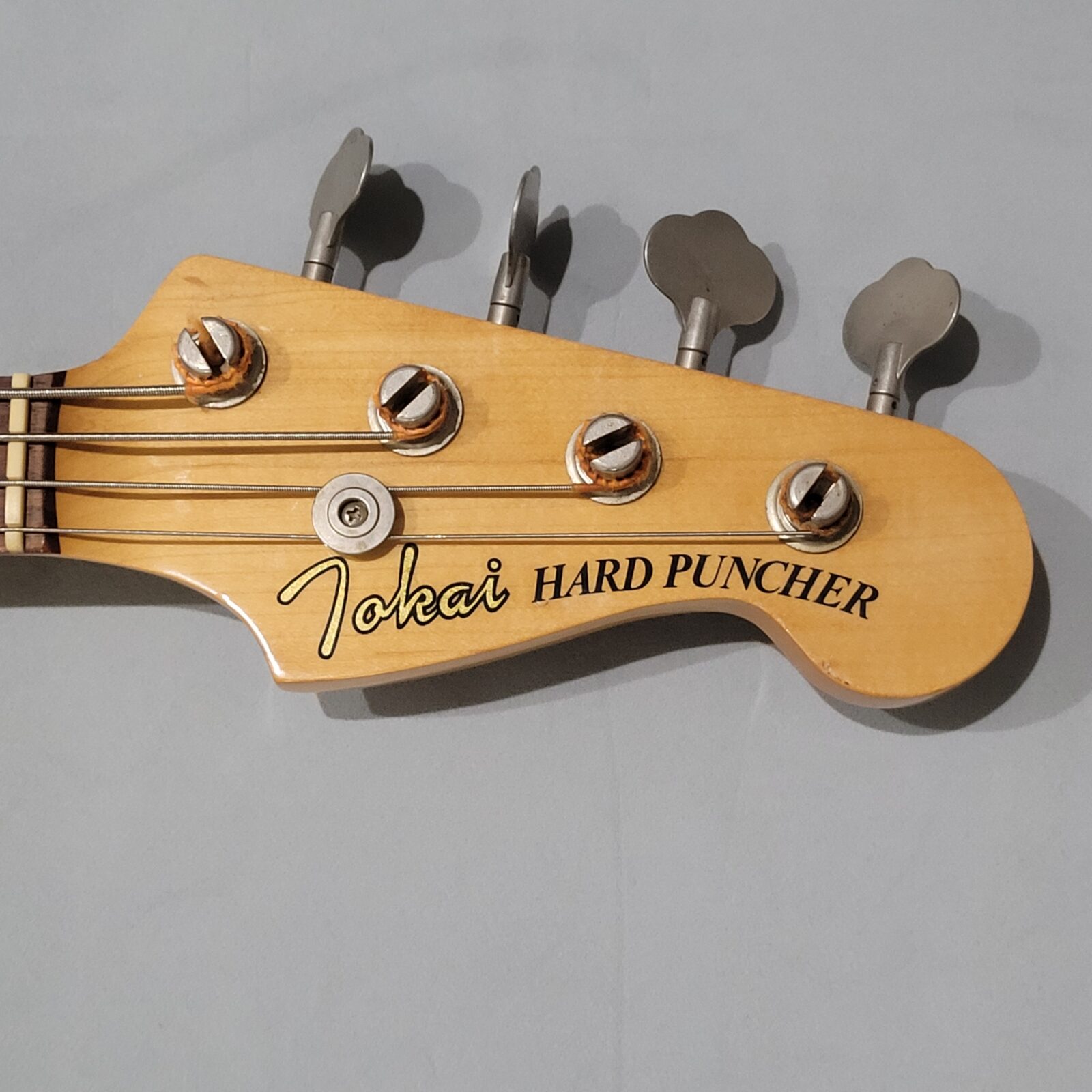 Tokai Hard Puncher w wersji spaghetti logo i do tego w całkiem przyjemnym stanie technicznym i wizualnym! Ostatnio czarne Tokaje mają wzięcie, więc nadrabiam zaległości i wystawiam kolejnego, wyszykowanego żeby grać kolejne 40 lat. Na moje oko to podstawowy model PB40, ale to nie znaczy, że gorszy – jest turbo wygodny i mruczy tak jak precel powinien. Ustawiony dość nisko, jak ktoś lubi wyżej to nie ma problemu, żeby podnieść. Wiosło po wszelkich koniecznych zabiegach + ekranowaniu.