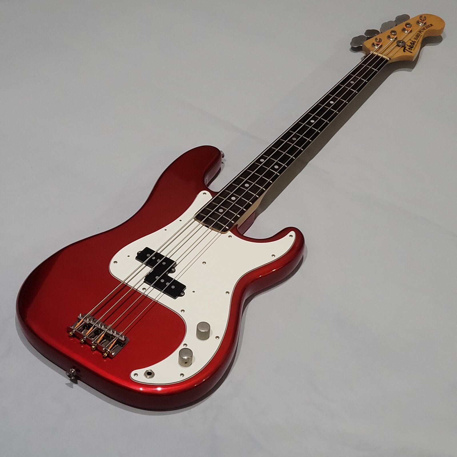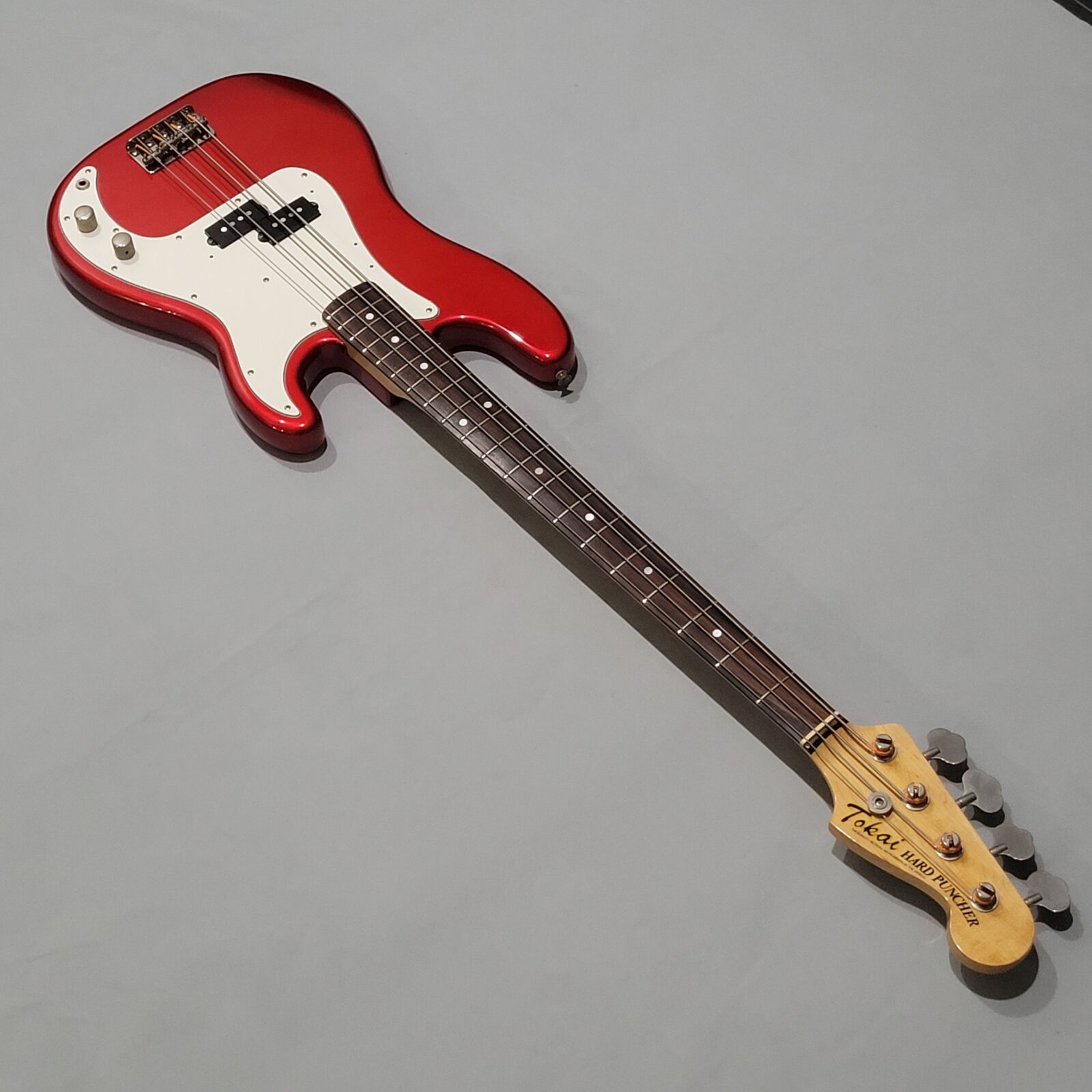 Candy Apple Red to jeden z moich ulubionych kolorów w „fenderowskiej” palecie, tutaj świetnie leży na precision bassie od Tokaja. Hard Puncher jak to hard puncher, uznany model wśród zawodowców jak i amatorów na całym świecie, nawet w swojej podstawowej odsłonie. Gitara ustawiona według powyższej specyfikacji.