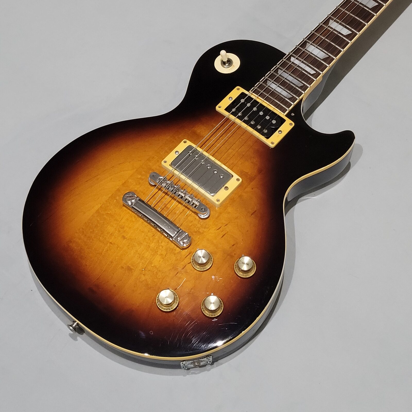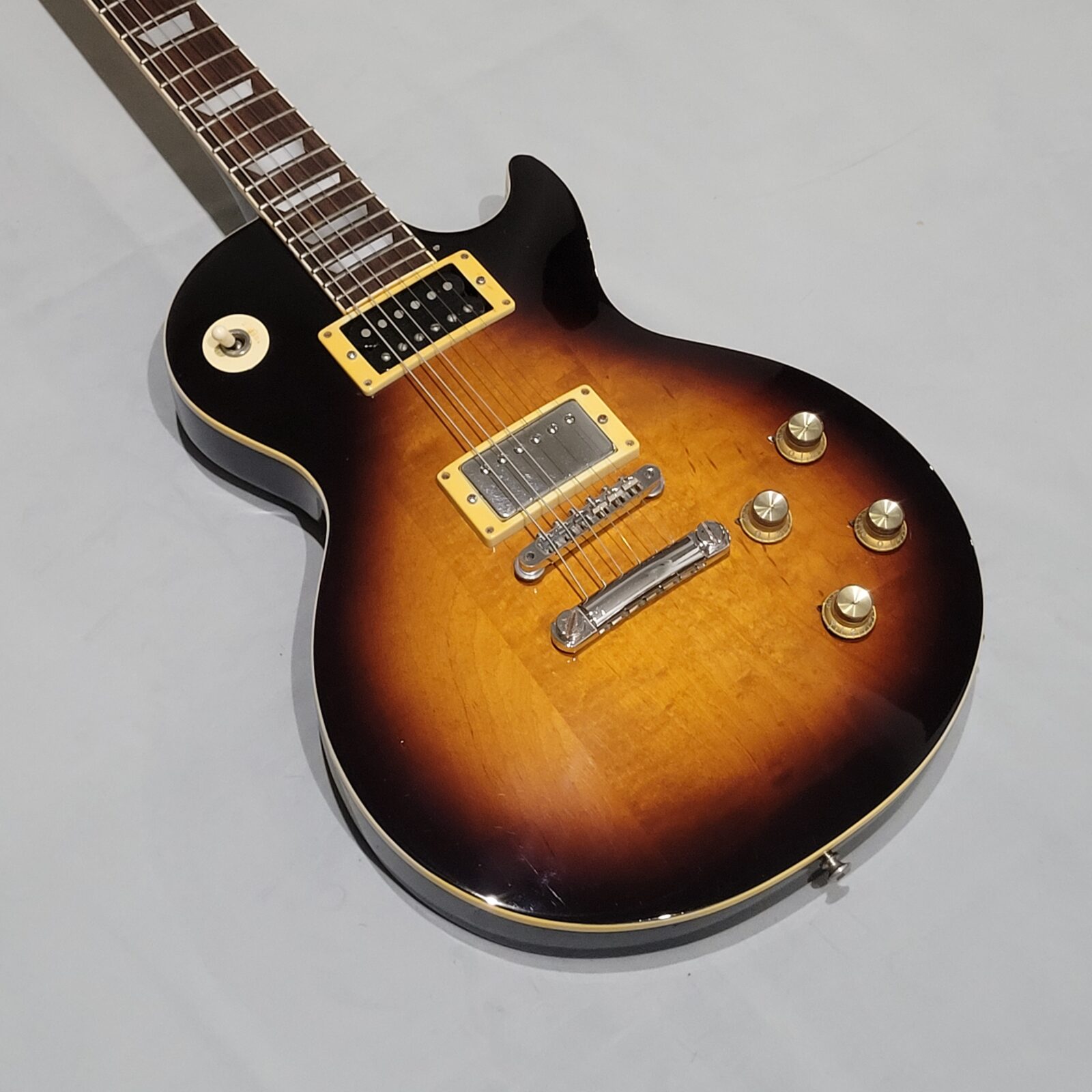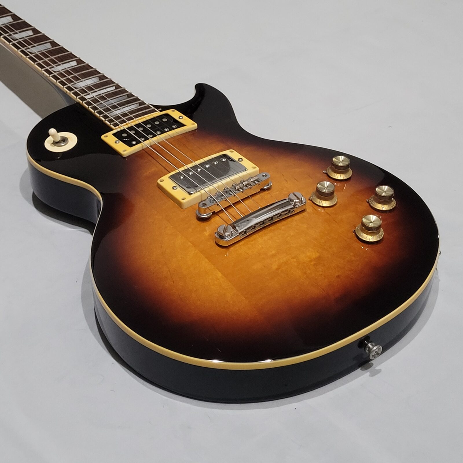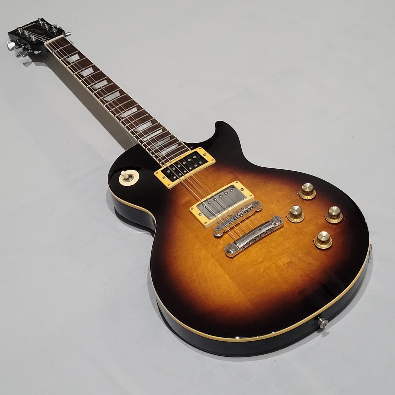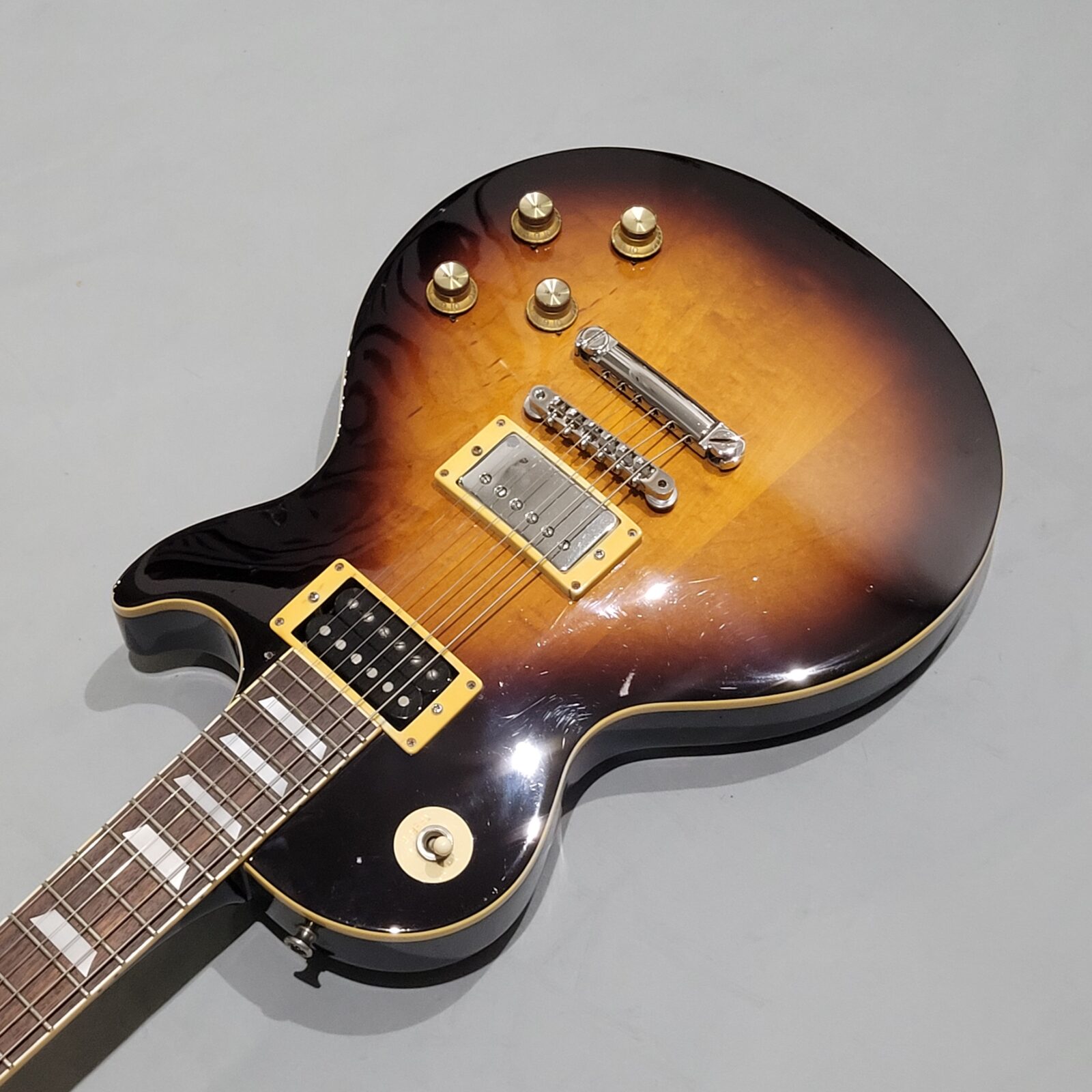 Yamaha SL600S Studio Lord, czyli model ze „średniej” półki jeśli chodzi o les paule wytwarzane przez Yamahę w latach 80 w Japonii. Tym razem w ładnej, tytoniowej przypalance, jeden pickup jest oryginalny, a drugi wymieniony – trudno mi powiedzieć co to jest, na pewno jest stary. Wiosło po pełnym serwisie, obejmującym wstawienie nowych progów.